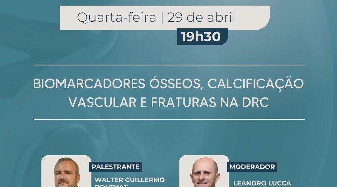 No dia 29.04, às 19h30, a Sociedade Brasileira de Nefrologia promoveu mais uma discussão online de Casos Clínicos do Departamento de DMO-DRC da SBN. Deste vez, a palestra abordou o tema ‘Biomarcadores ósseos, calcificação vascular e fraturas na DRC’ e foi moderado por Leandro Lucca, FMUSP. O palestrante foi Walter Guillermo Douthat, Chefe da Seção de Metabolismo Mineral do Serviço
