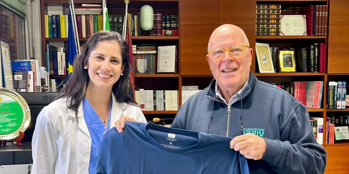 O nefrologista italiano Claudio Ronco recebe a camisa oficial da Sociedade Brasileira de Nefrologia, em reconhecimento à sua contribuição para o avanço da diálise e da nefrologia mundial. A entrega foi realizada em Vicenza, Itália, pela membro do Departamento de Diálise da SBN, Maria Gabriela Guimarães – um gesto simbólico de amizade e de parceria entre a nefrologia brasileira e