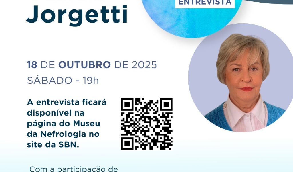 O Museu Virtual da Nefrologia tem a honra de entrevistar a nefrologista Vanda Jorgetti. 📅 18 de outubro de 2025 🕒19h (horário de Brasília) Nesta conversa, teremos a participação dos membros do Comitê de História da Nefrologia, Edison Souza e Rene Scalet. Além de Aluizio Barbosa Carvalho e Rodrigo Bueno de Oliveira, membros do Departamento de Distúrbio Mineral Ósseo da