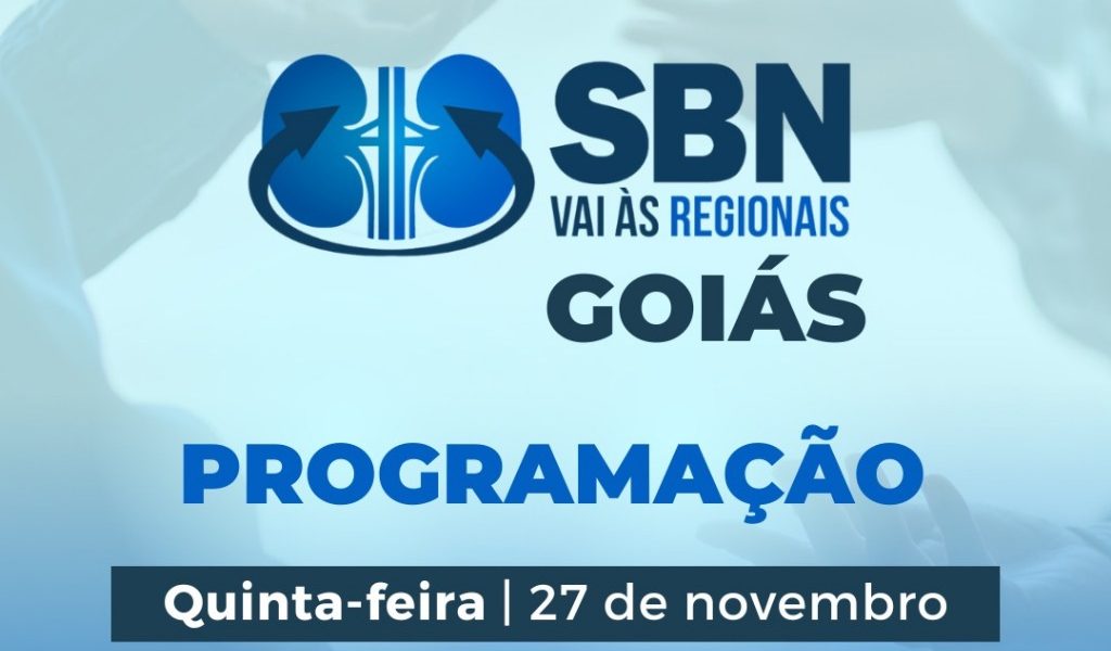A 16ª edição do projeto “SBN Vai às Regionais” acontece no dia 27 de novembro, em Goiânia (GO)! No dia 27.11, às 19h, acontece o Simpósio Satélite sobre ”Hiperpotassemia”, em seguida, às 20h, haverá um encontro exclusivo da Diretoria Nacional da SBN com os associados de Goiânia para acolhimento de propostas e debate. A nova edição do ‘SBN Vai às