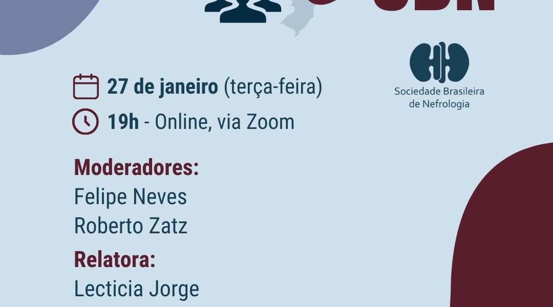 Um encontro interativo que conecta residentes, nefrologistas e especialistas de todo o Brasil para discutir casos reais, trocar experiências e atualizar condutas clínicas. 📅 27 de janeiro (terça-feira) 🕖 19h 💻 Online, via Zoom: https://us06web.zoom.us/j/86517486331?pwd=Y7hojnvqyga1FseM3UmUxlccdTbIGv.1 👉 Envie seu caso e participe das discussões! https://docs.google.com/forms/d/e/1FAIpQLSdjo0_Z-sRBr_ZtCkS29WRklnY6H1W7oFyMyWCh_HcYWBZZIw/viewform Não perca a chance de aprender com quem vive a nefrologia na prática!