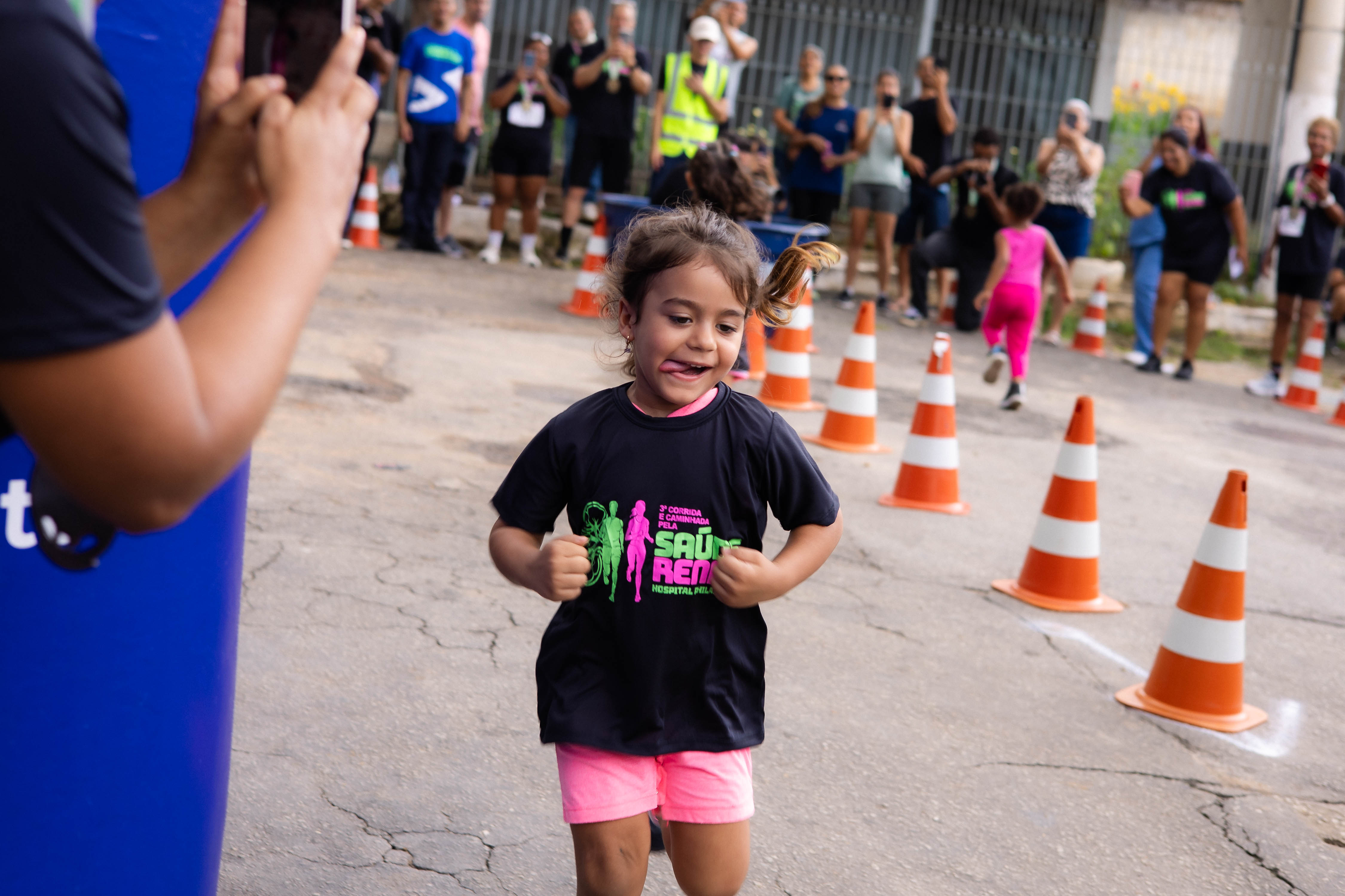 As imagens registram momentos marcantes da corrida. É possível observar o espírito esportivo, a superação individual e a interação entre os corredores ao longo do percurso.