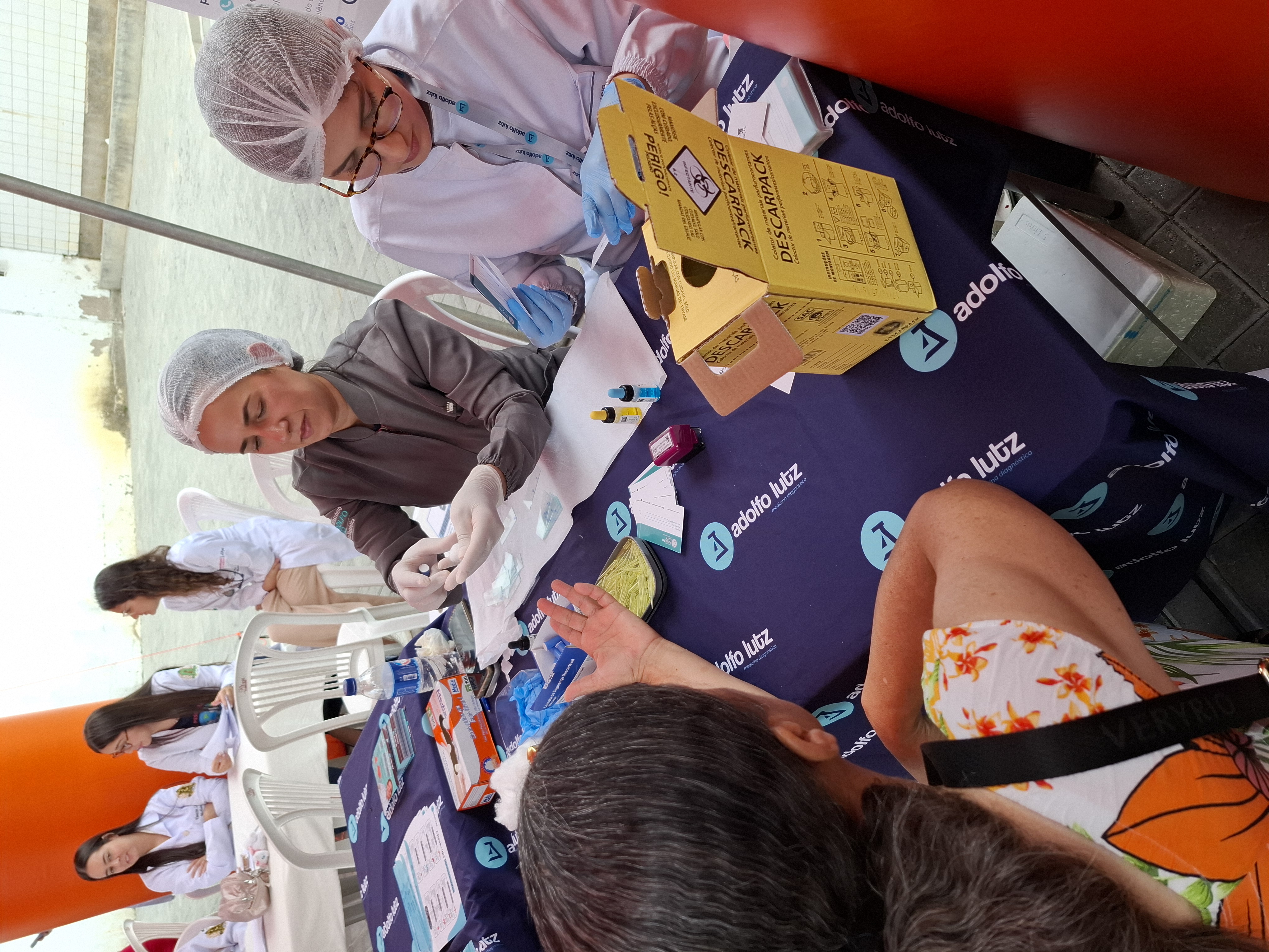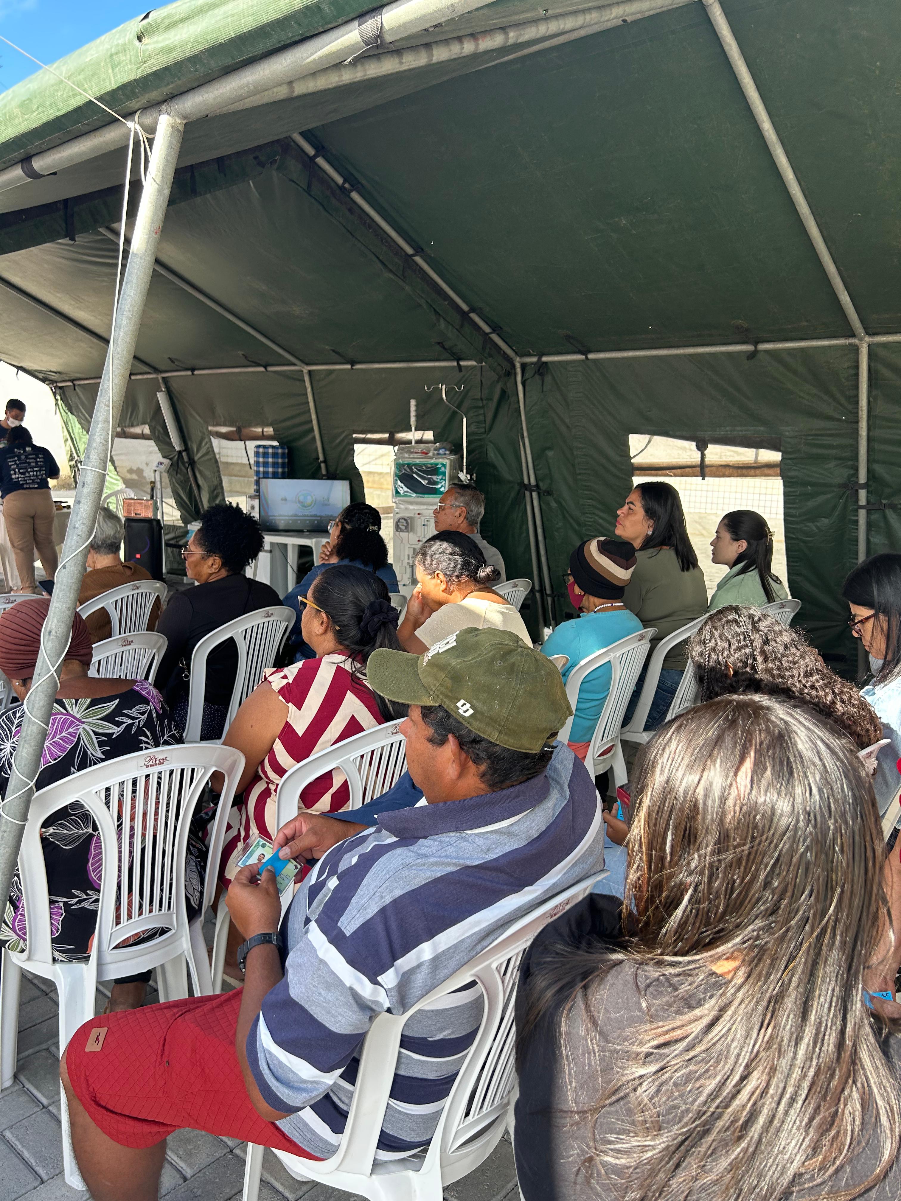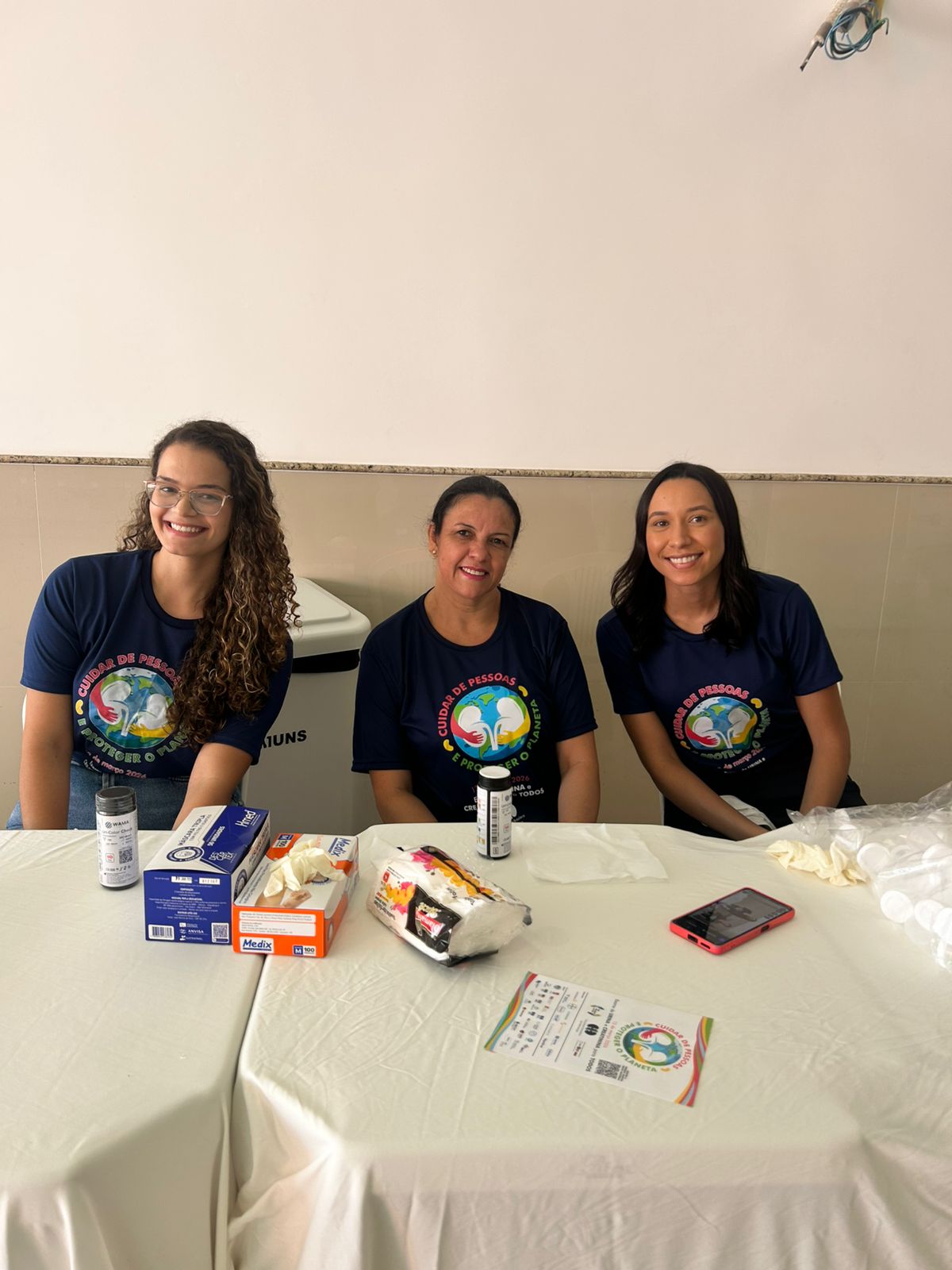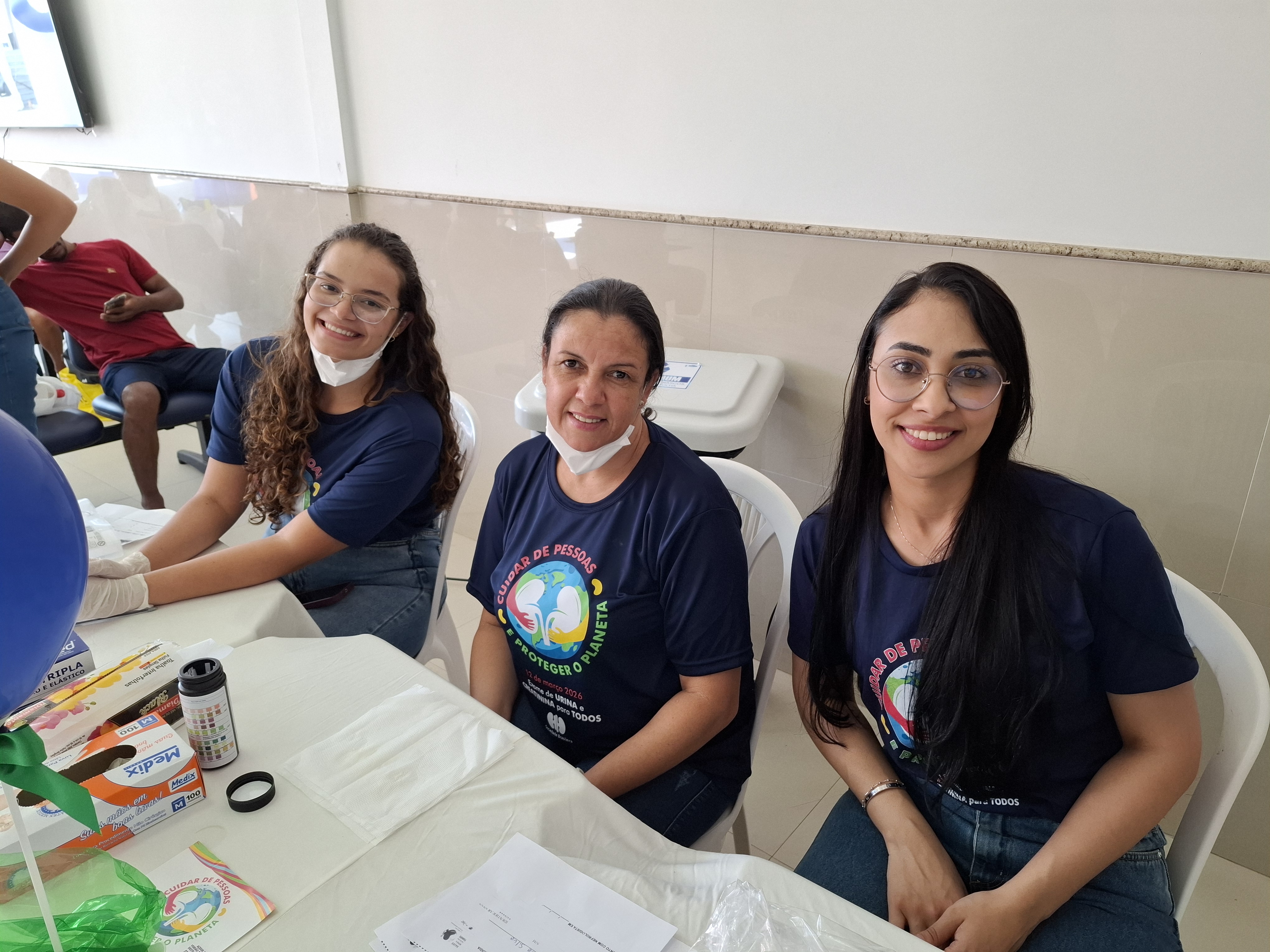 Durante a ação recebemos apoio de profissionais e estudantes de instituções de saúde e educação da cidade. Promovemos palestra, orientações com profissionais de nefrologia, nutrição, farmácia, fisioterapia, teste de urinálise, tipagem sanguínea, teste de glicemia, aferição de pressão arterial, verificação de peso e as pessoas que apresentaram alterações foram encaminhadas para atendimento médico.