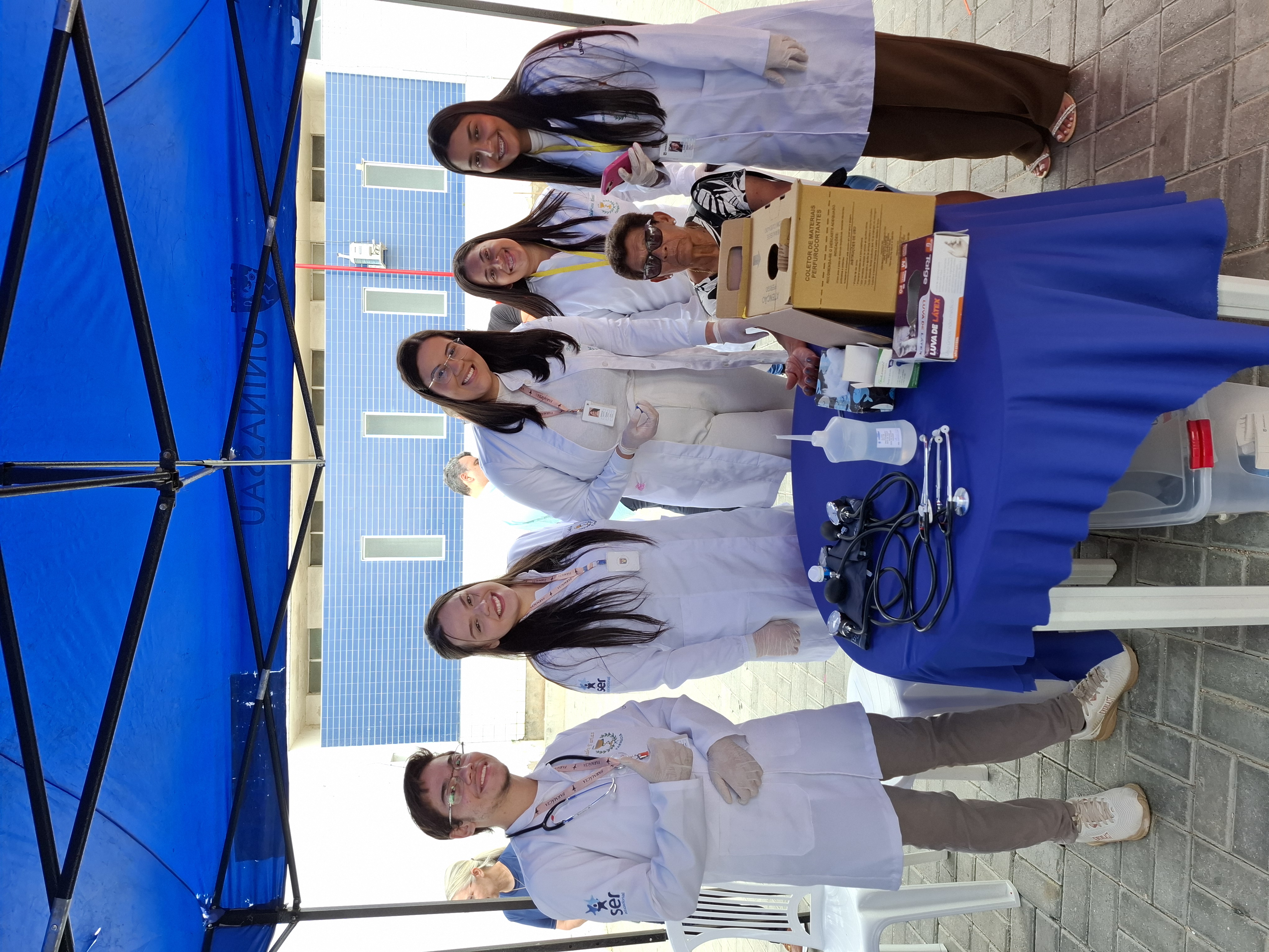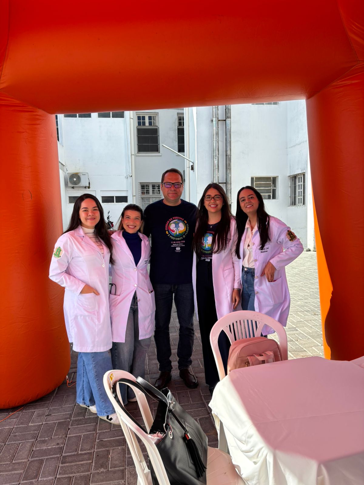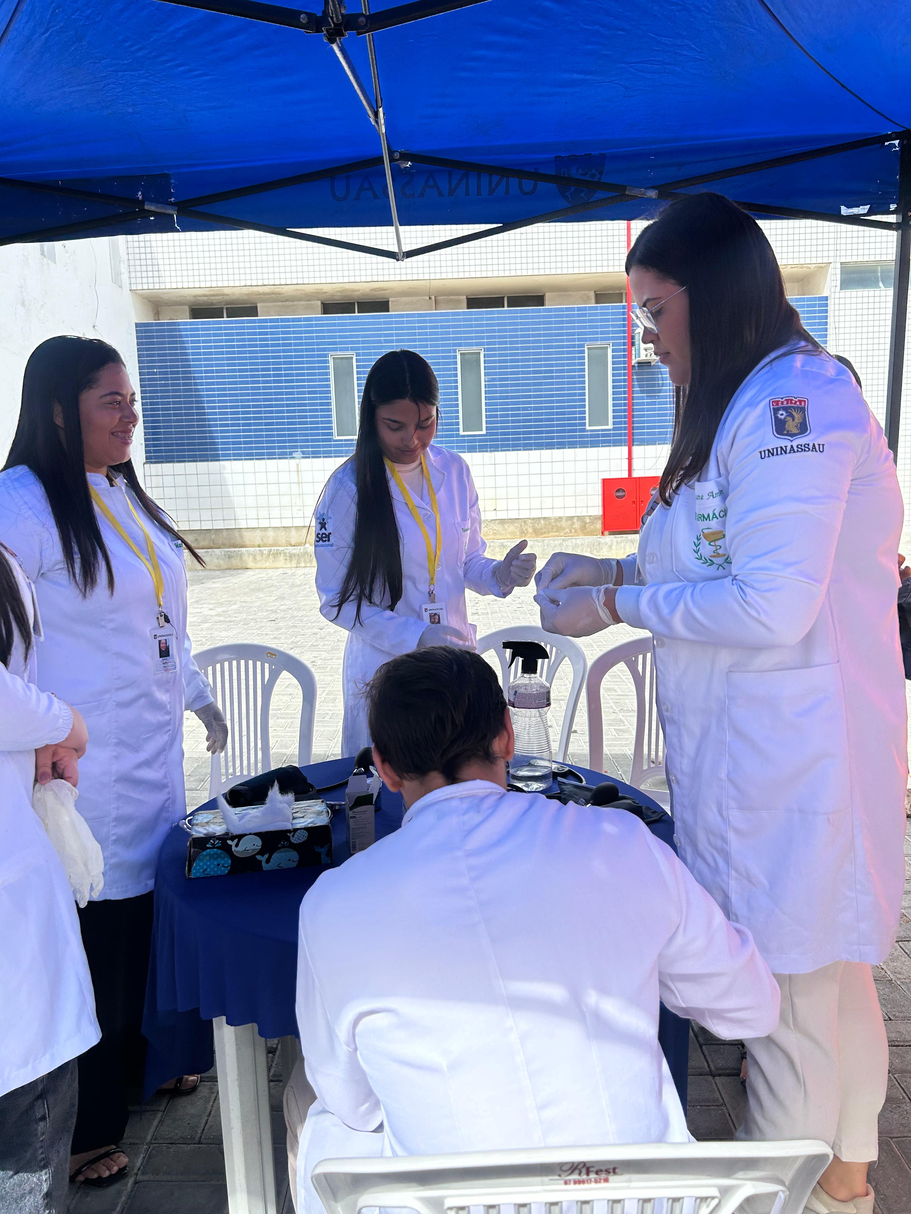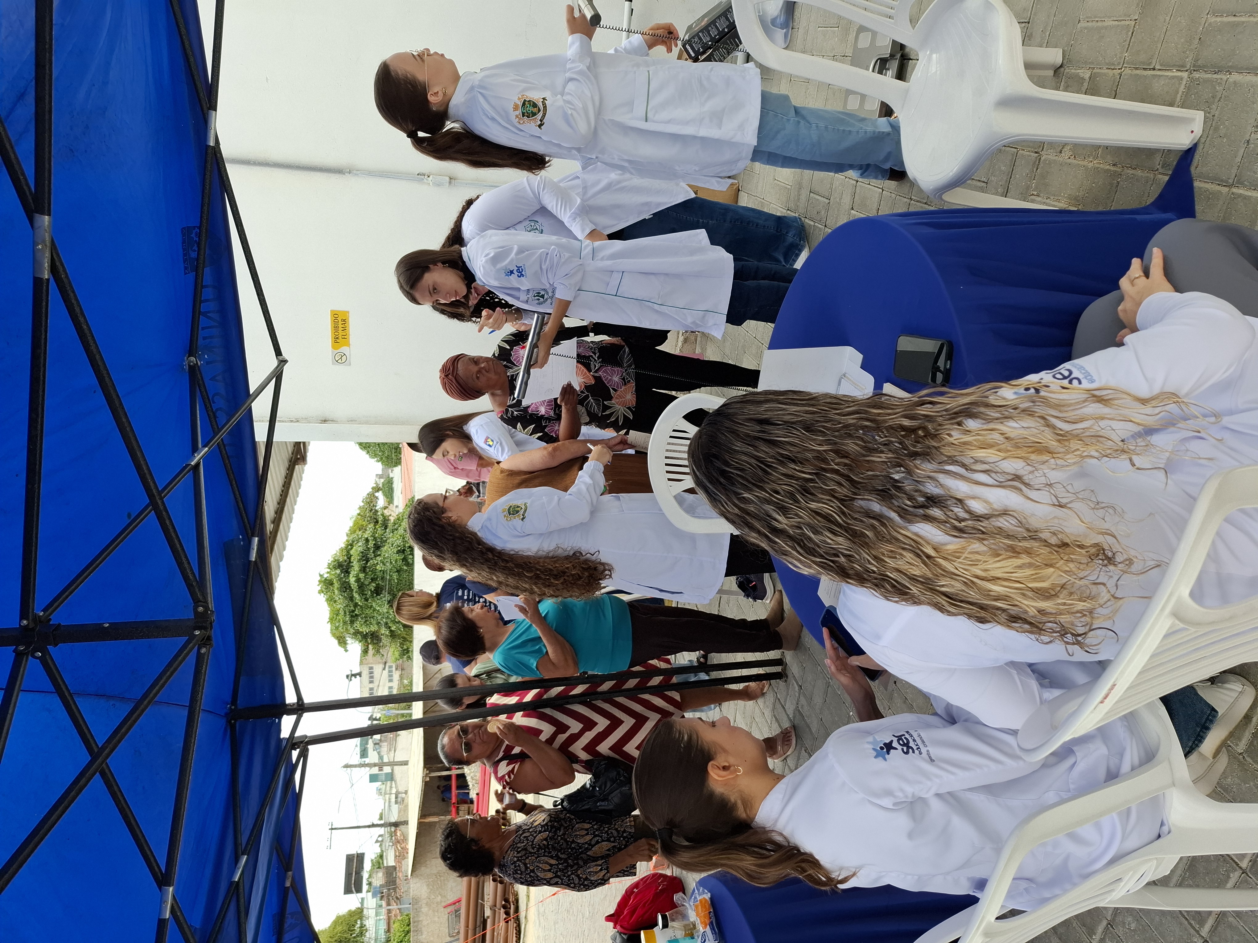 Durante a ação recebemos apoio de profissionais e estudantes de instituções de saúde e educação da cidade. Promovemos palestra, orientações com profissionais de nefrologia, nutrição, farmácia, fisioterapia, teste de urinálise, tipagem sanguínea, teste de glicemia, aferição de pressão arterial, verificação de peso e as pessoas que apresentaram alterações foram encaminhadas para atendimento médico.