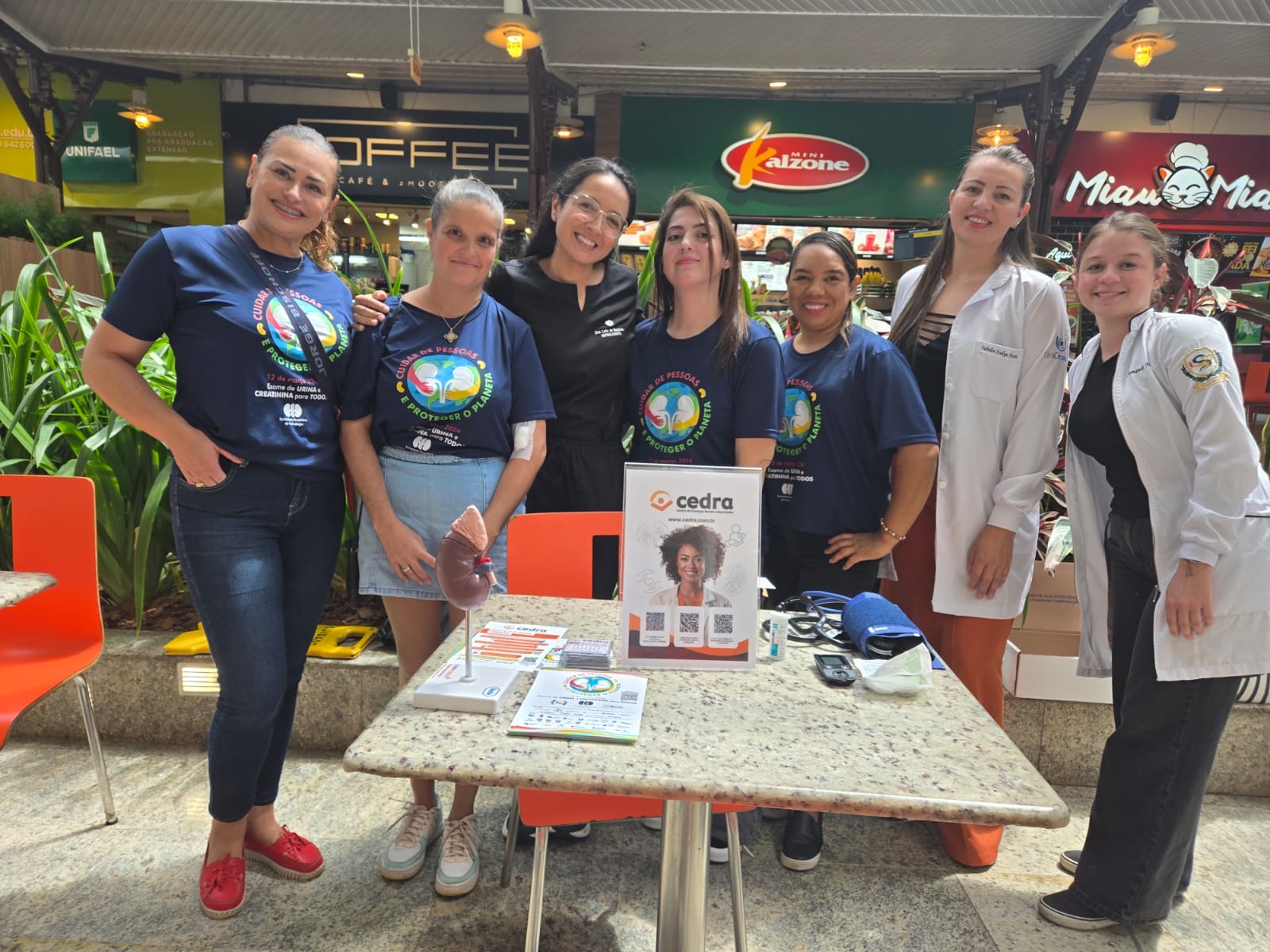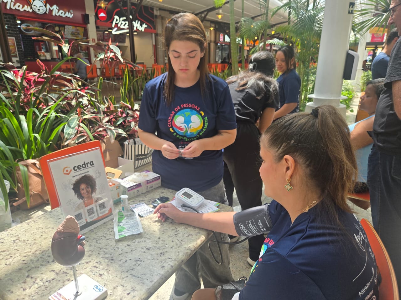 No dia 14 de março, a CEDRA esteve no Shopping Estação realizando um movimento especial em prol da saúde renal. Foram oferecidas aferição de pressão arterial, testes de glicemia e orientações médicas para todas as pessoas que passaram pelo local, levando informação e cuidado de forma acessível e acolhedora.