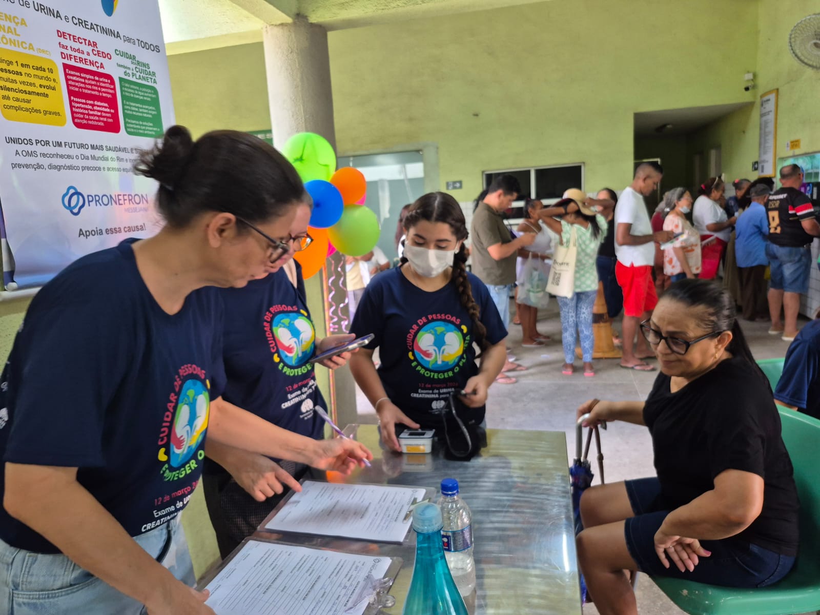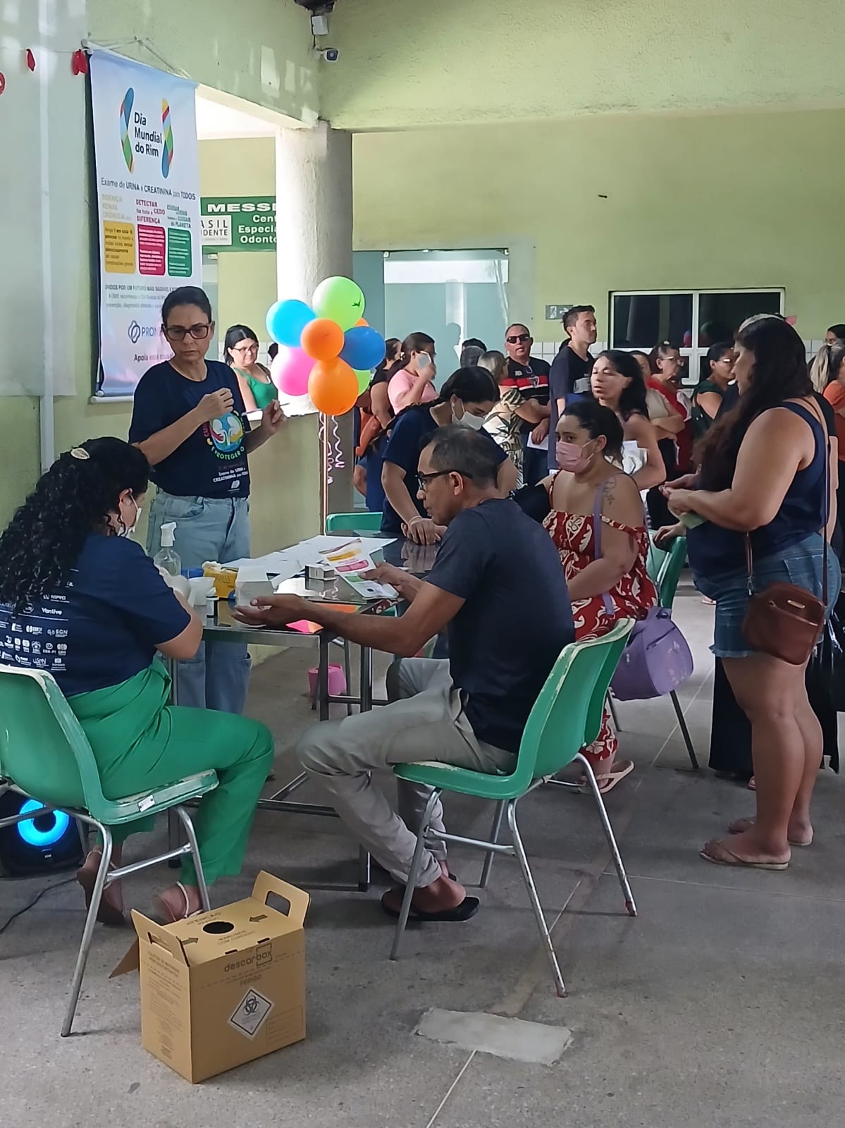 Na manhã do dia 10 de março de 2026 a Pronefron Messejana por meio da equipe multi profissional, realizou ação pelo Dia Mundial do Rim na UBS Casa Verde em Messejana, um local com grande movimentação de pessoas. Foi ofertado serviço de aferição de PA, teste de glicemia, distribuição de panfletos e palestas sobre a prevenção da Insuficiência Renal Crônica e cuidado do nosso planeta, inclusive com a presença dos acadêmicos de medicina da UNIFOR que estavam em visita no mesmo dia. Houve grande interesse da comunicade em receber orientações, tirar dúvidas. O evento teve continuidade com entrega de panfletos e explicações na unidade dialítica entre os pacientes e acompanhantes.