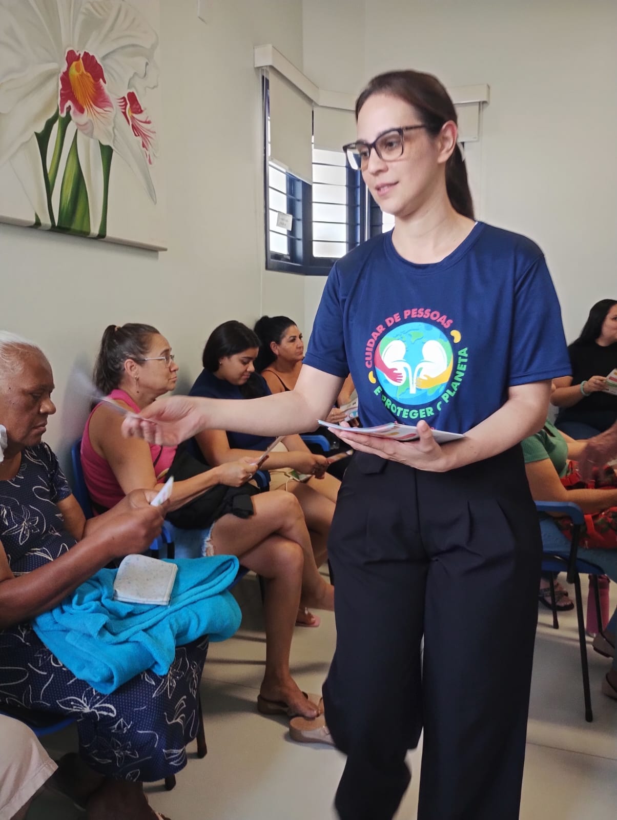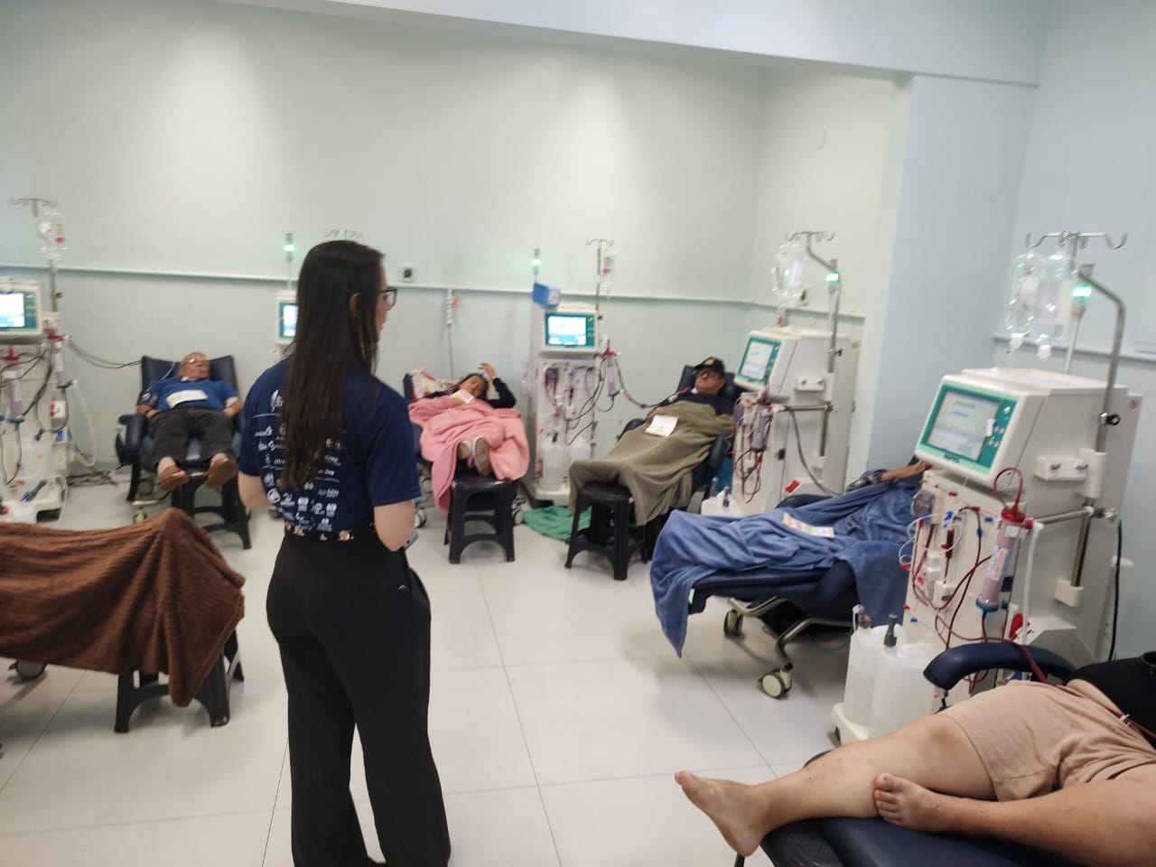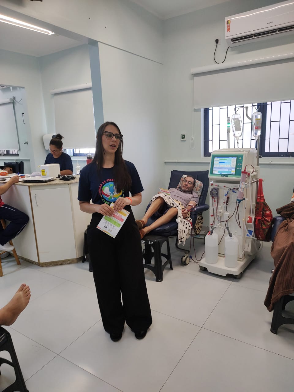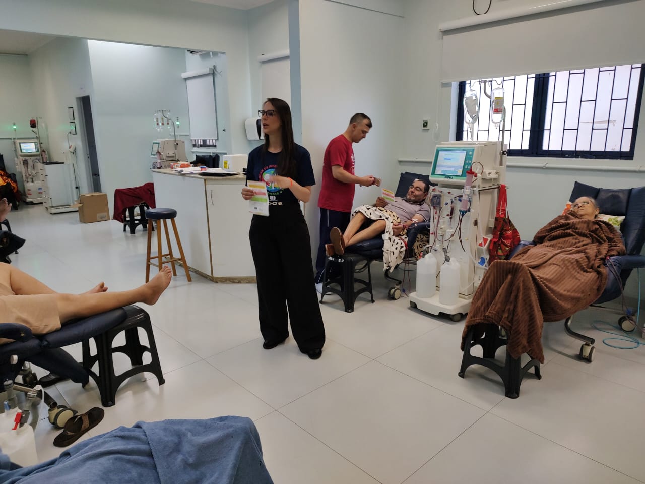 Entre as atividades realizadas, destacou-se a roda de conversa com familiares e cuidadores de pacientes em hemodiálise, proporcionando um espaço de diálogo, troca de experiências e esclarecimento de dúvidas relacionadas ao tratamento e aos cuidados necessários no dia a dia.