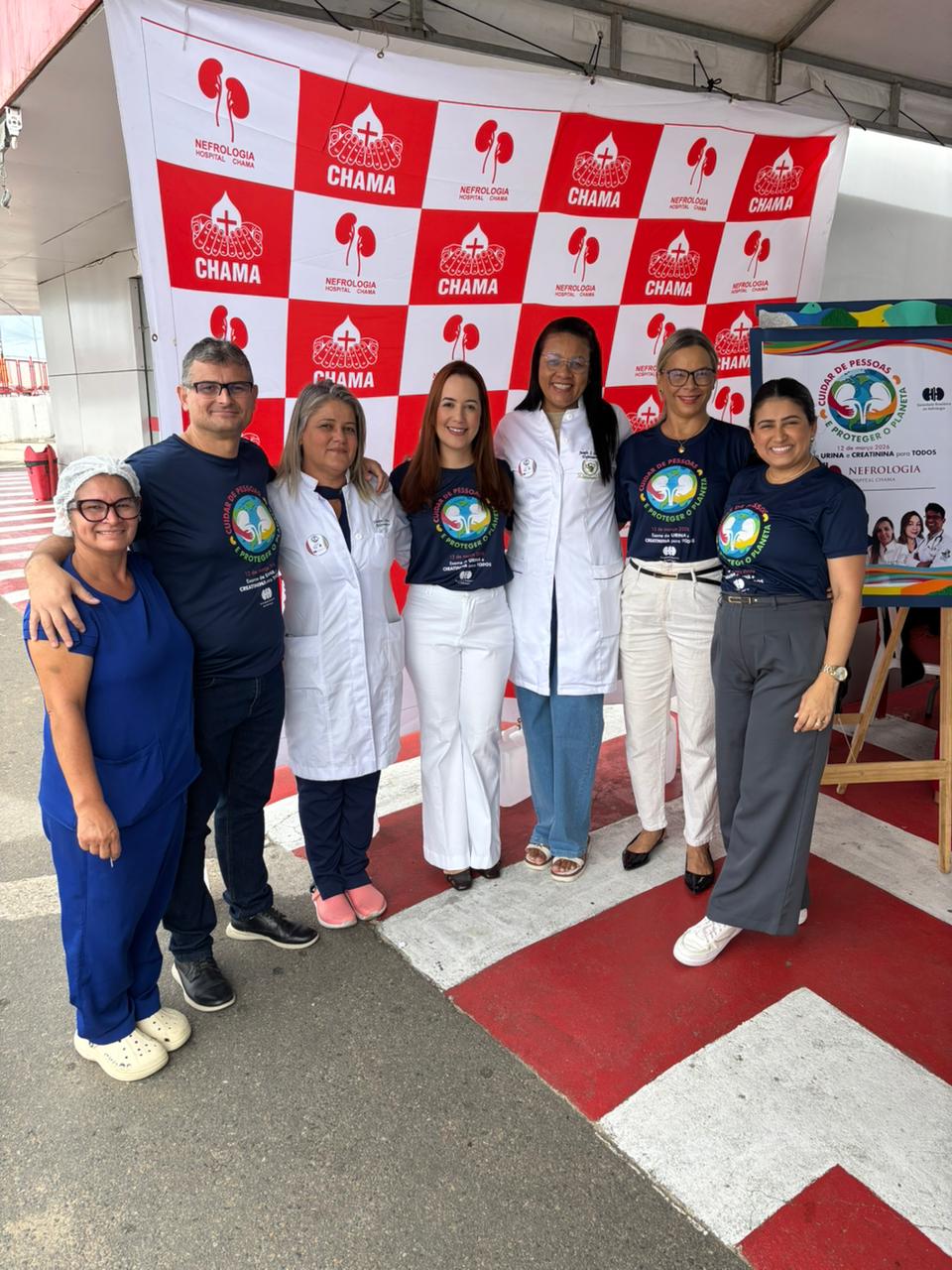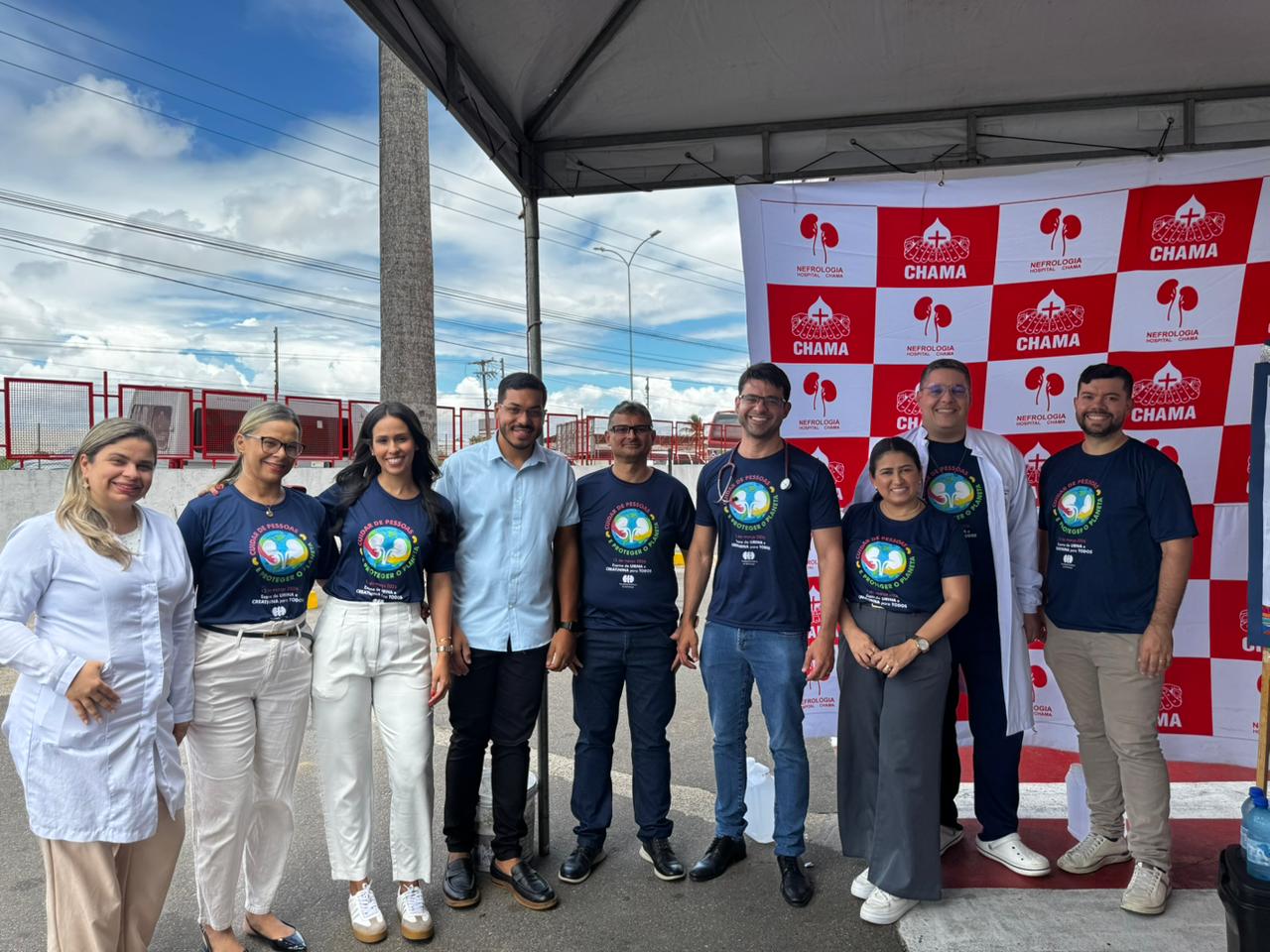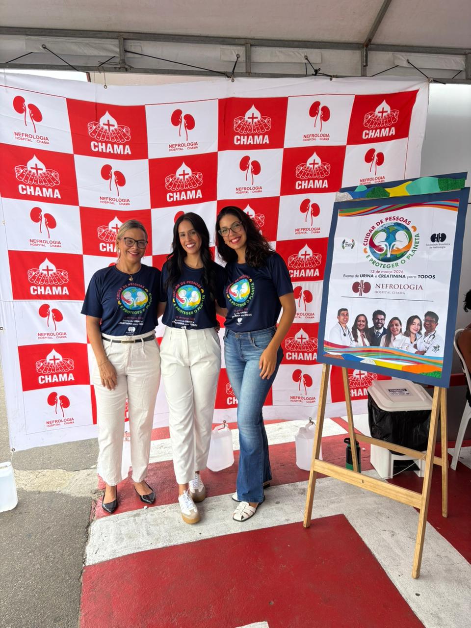 Dia Mundial do Rim realizado no dia 12 de março de 2026 no estacionamento do Hospital CHAMA, onde funcionários e pacientes de outros setores do hospital foram convidados para participar do momento de conscientização quanto a importância do cuidado aos rins.