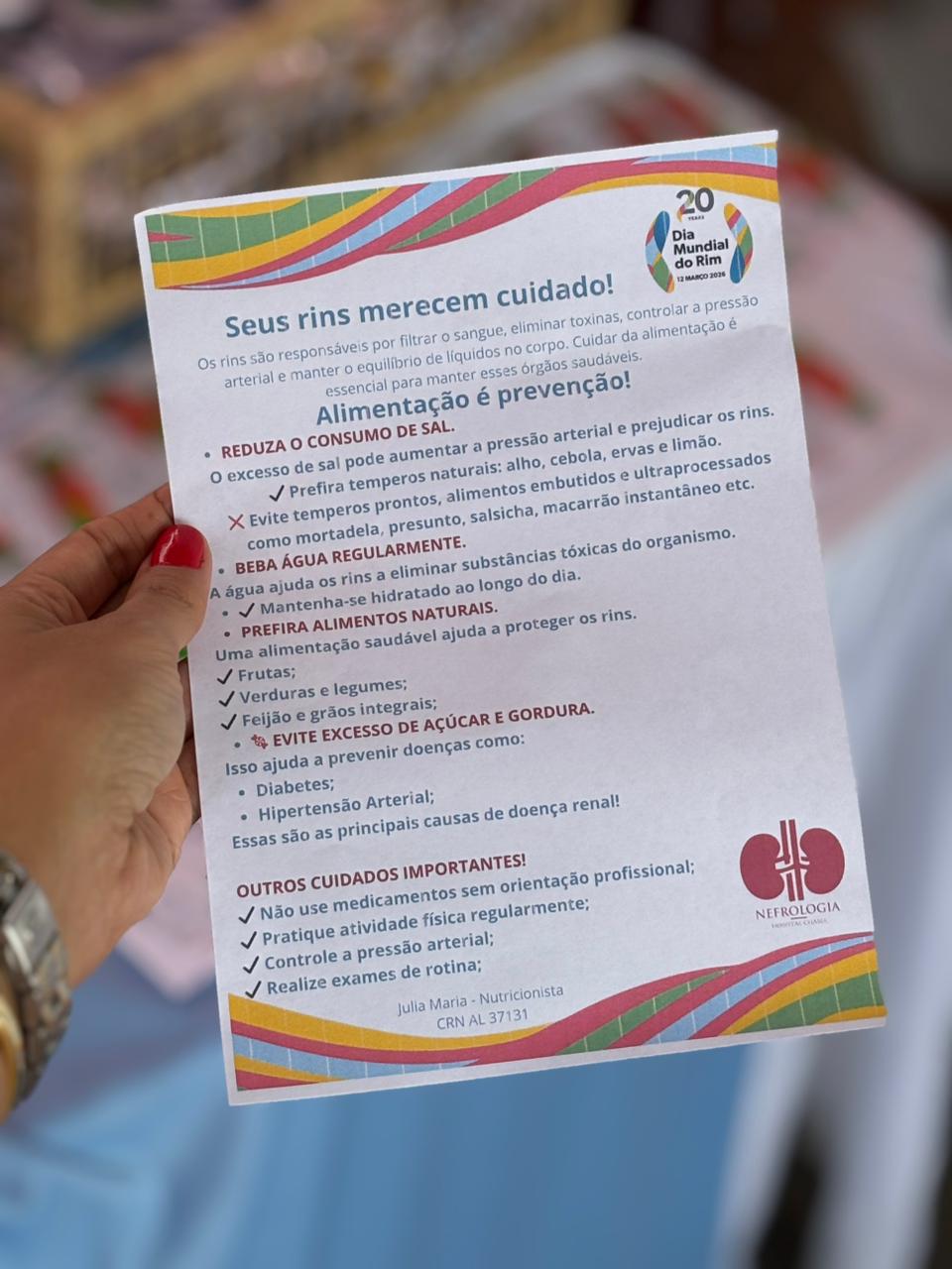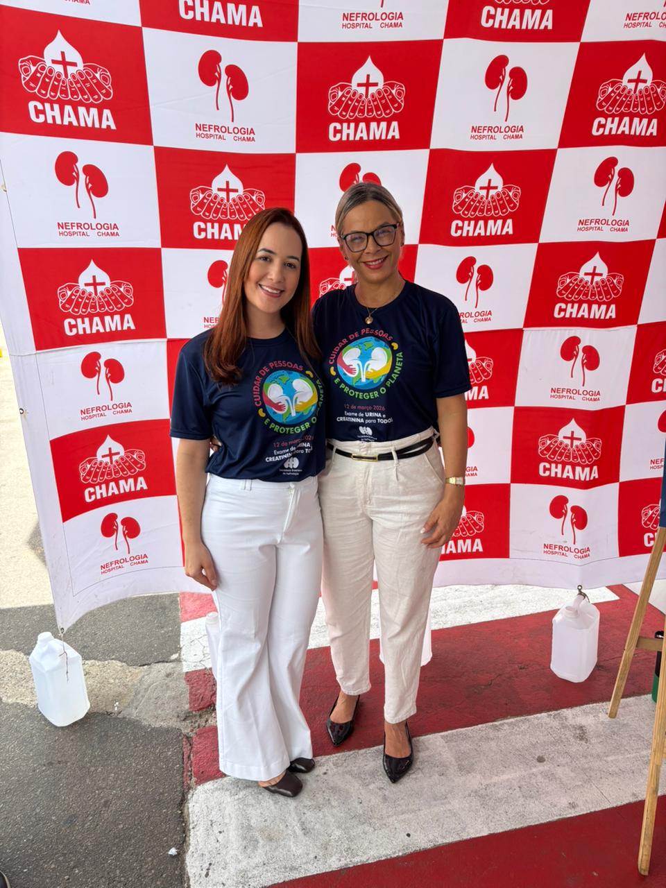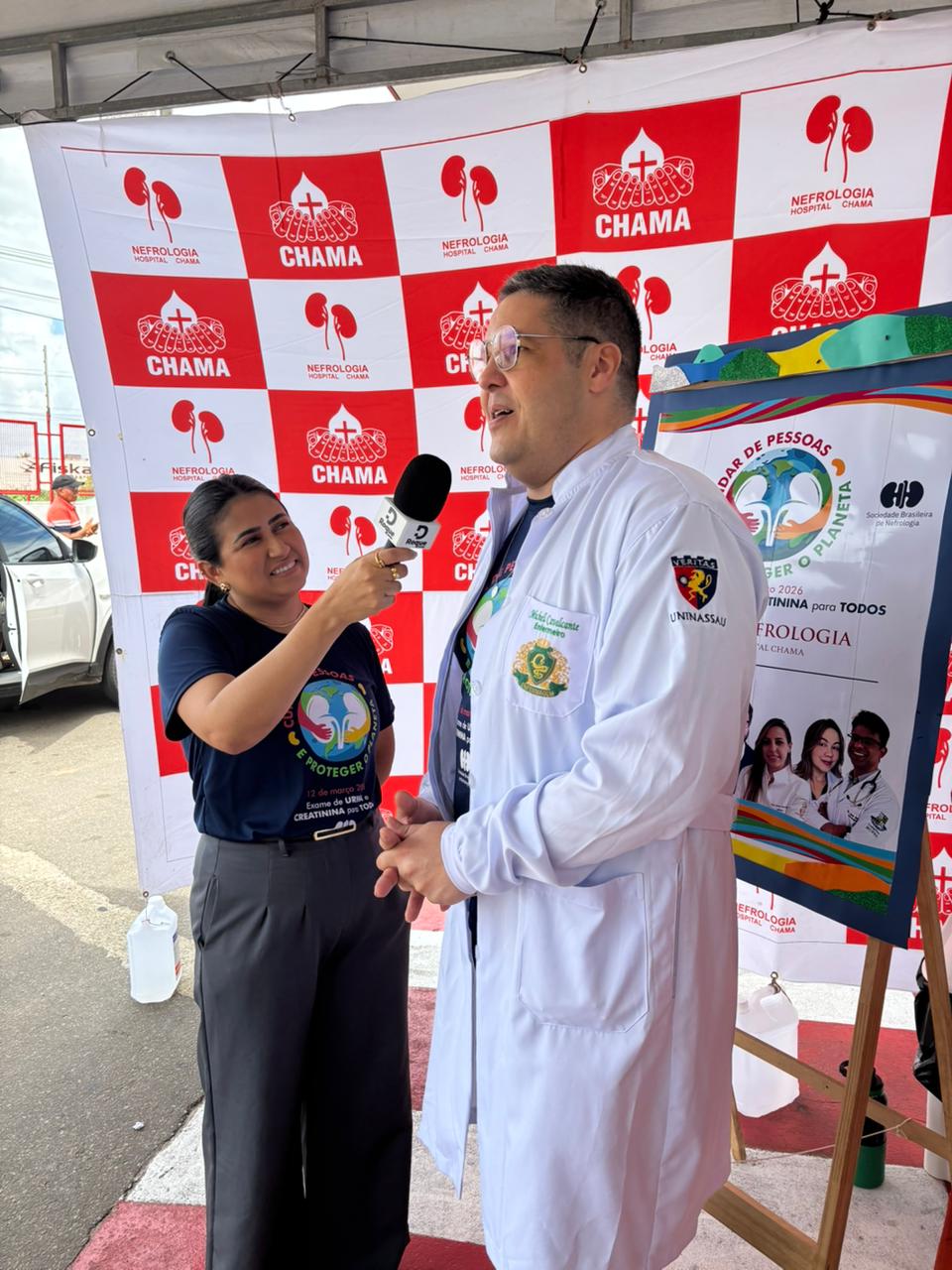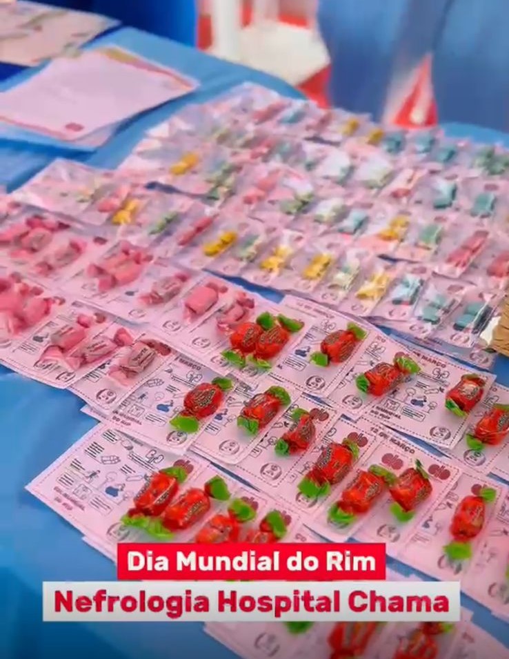 Dia Mundial do Rim realizado no dia 12 de março de 2026 no estacionamento do Hospital CHAMA, onde funcionários e pacientes de outros setores do hospital foram convidados para participar do momento de conscientização quanto a importância do cuidado aos rins.