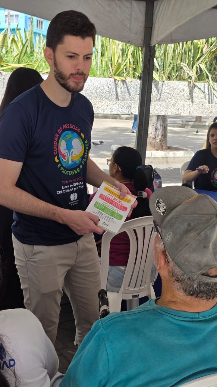 Foram realizados 452 abordagens com aferição da pressão arterial, HGT, entrega de voucher de exames gratuitos de creatinina para 60 pacientes que apresentaram fatores de risco associado, com orientação de após entrega dos resultados apresentar ao médico da UBS para encaminhamento do ambulatório com nefrologista, caso seja necessário.