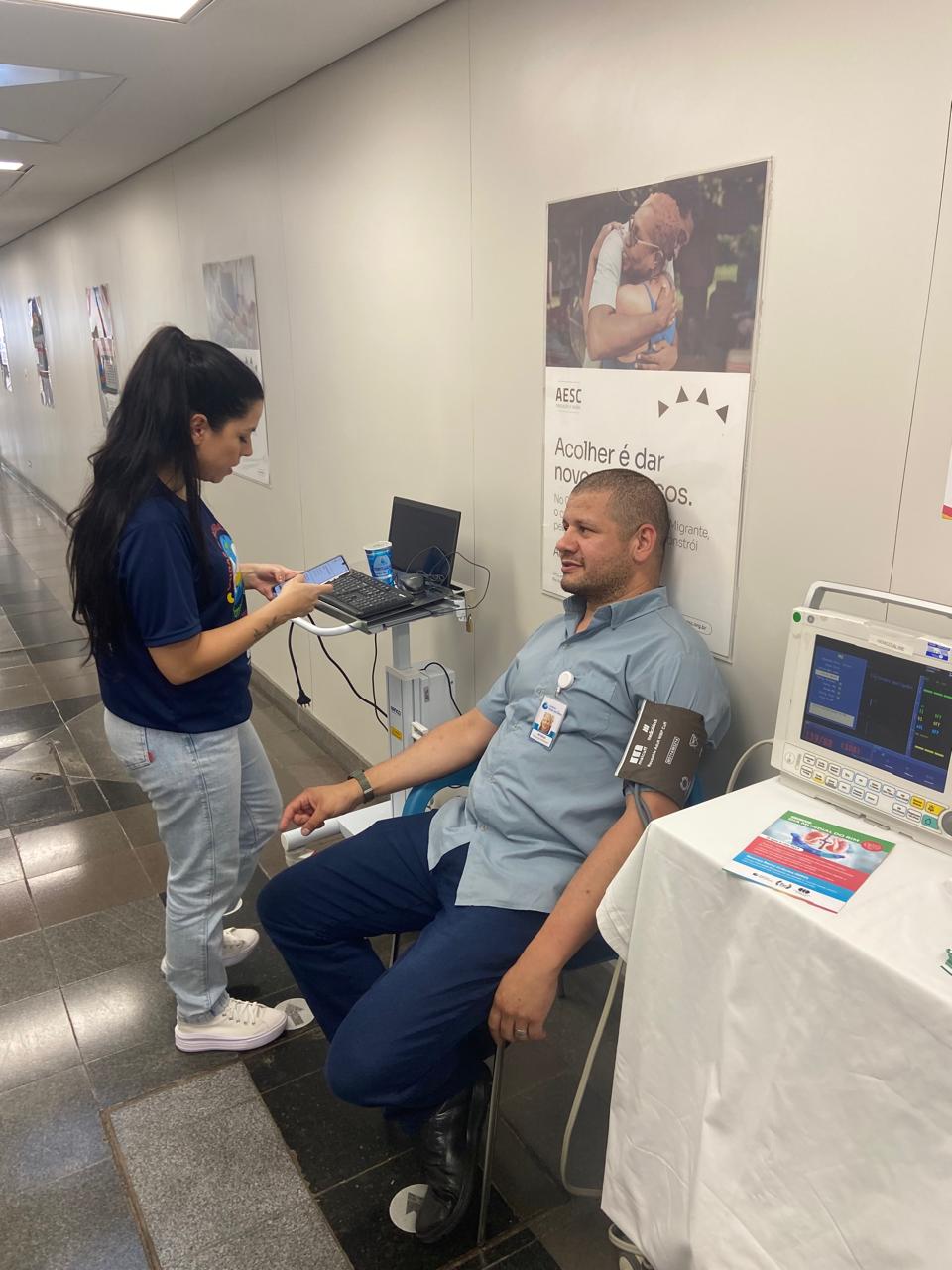 Adicionalmente, foram desenvolvidas ações internas direcionadas aos colaboradores do hospital, com atendimento médio de 50 profissionais. Durante essas ações, foram realizadas triagem, aferição da pressão arterial e fornecidas orientações gerais de prevenção à saúde, no refeitório do hospital foram entregue receitas de sal de ervas.