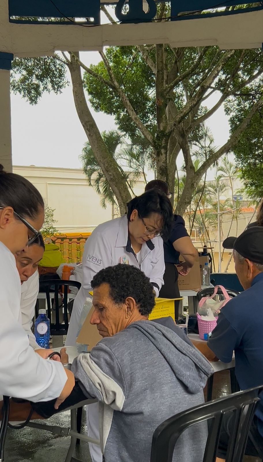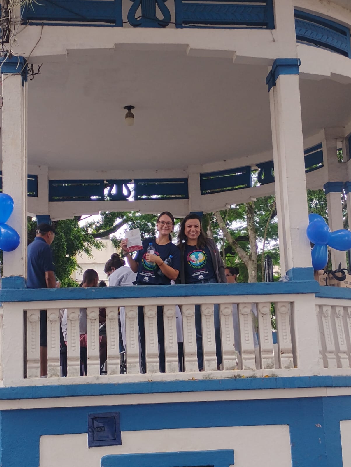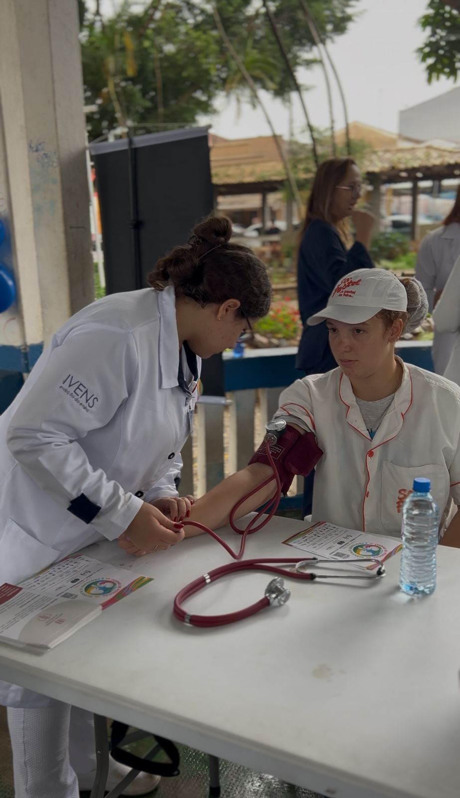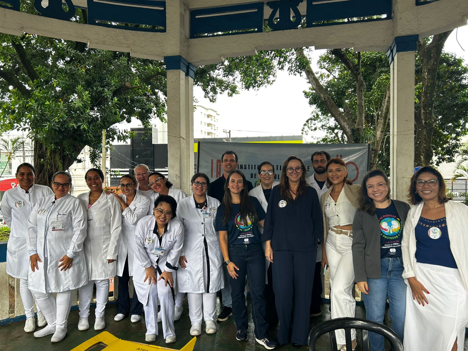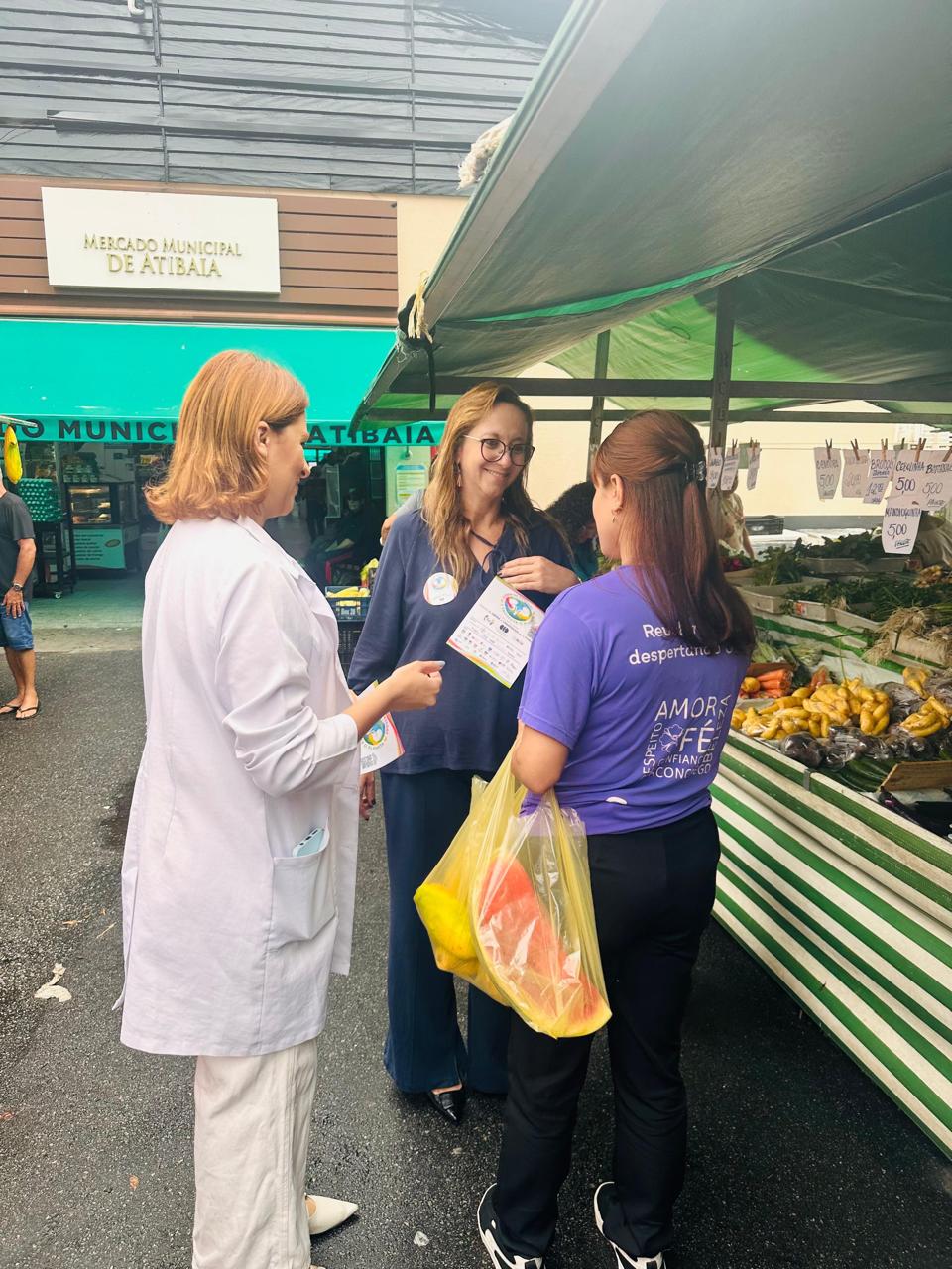 Atendemos mais de 100 pessoas na praça central de Atibaia, na qual realizamos teste de glicemia capilar, verificação de pressão arterial, informações sobre saúde renal e distribuição de garrafas de água.