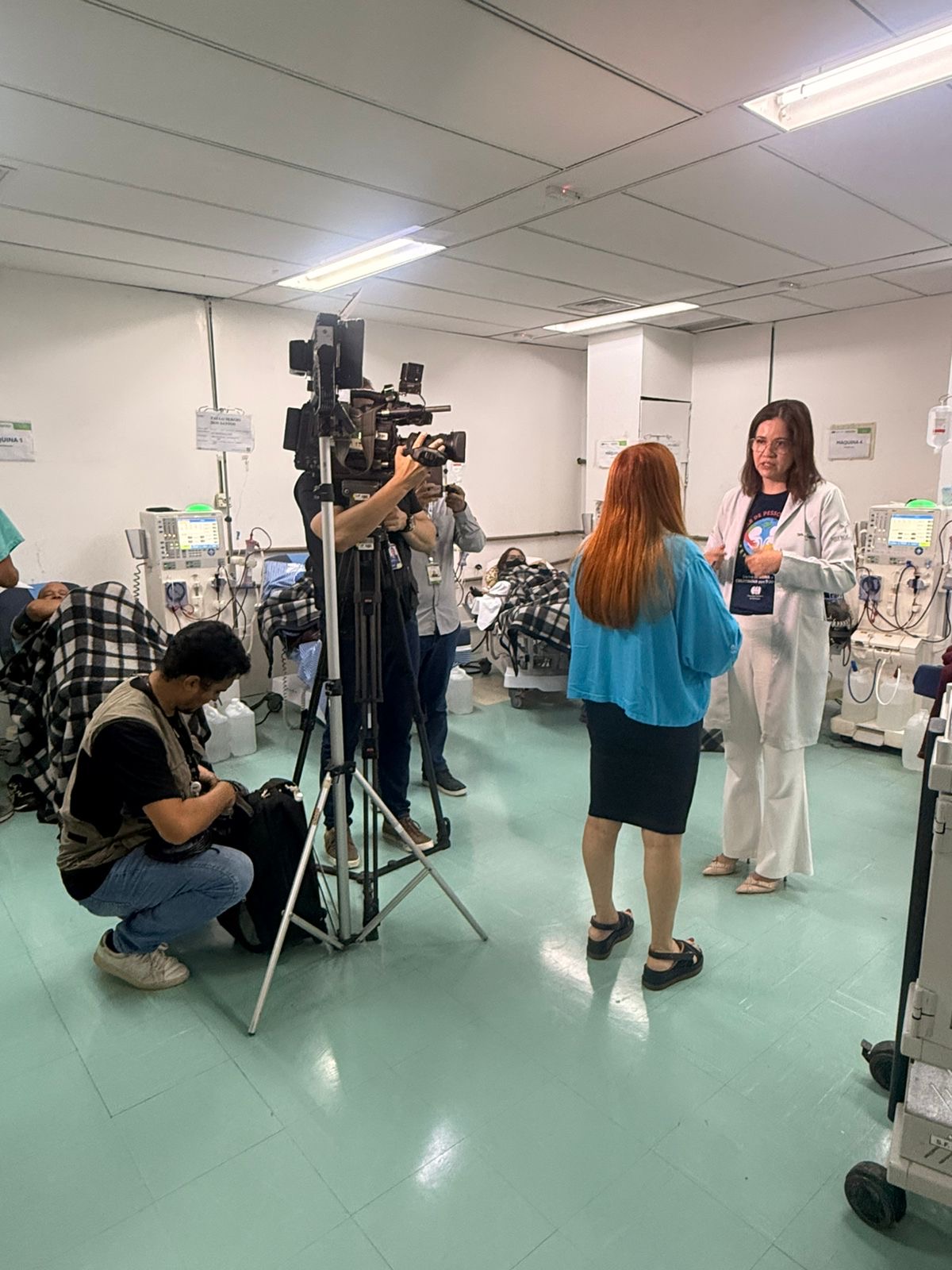 Entrevista no Hospital Universitário de Brasília sobre a situação da Diálise no Distrito Federal usando a camiseta do Dia Mundial do Rim.
