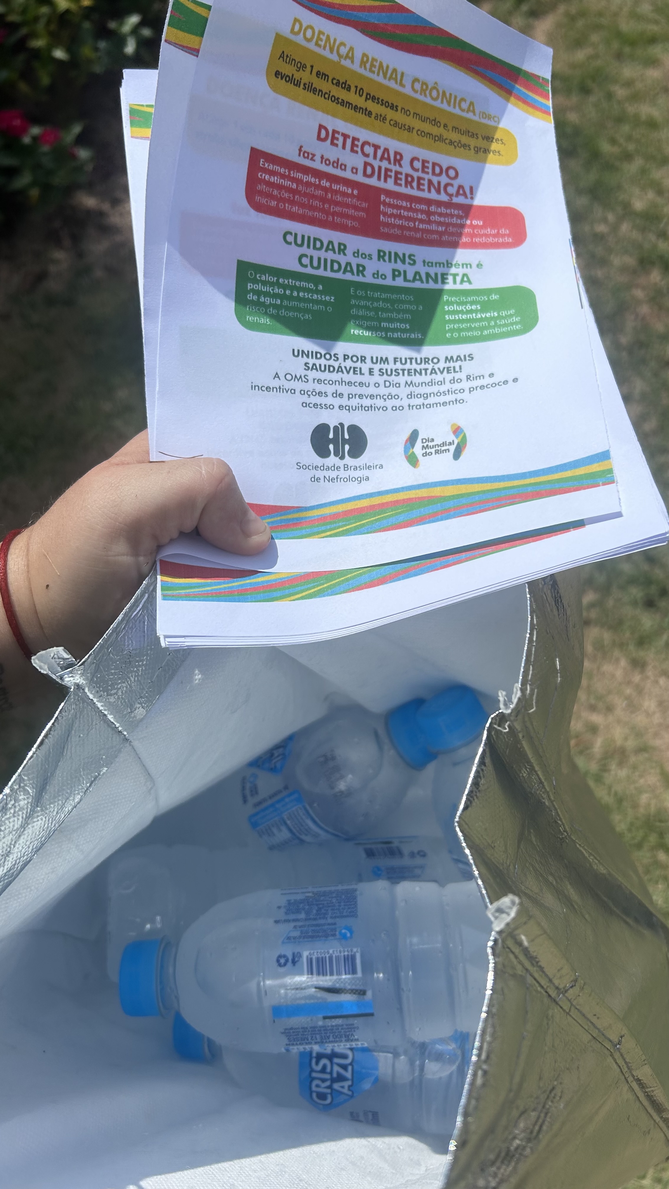 Ação realizada junto de acadêmicos de medicina na praça da cidade com abordagem de mais de 300 pessoas distribuindo água e panfletos com orientações sobre a prevenção de DRC . E entrevista em programa de televisão falando sobre o dia mundial do rim .
