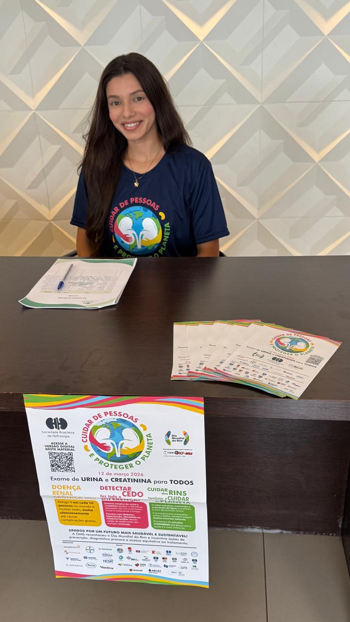 No dia 12/3/2026, no período matutino, a Clínica Mirindiba Especialidades Médicas, na recepção do Bloco do Complexo Golden Oficce Corporate, onde está localizada, realizou evento alusivo ao Dia Mundial do Rim 2026, constituído das seguintes atividades: aferição de PA; glicemia capilar; entrega de material educativo; disponibilização de vouchers para realização do exame de creatinina (parceria com o Laboratório SABIN); orientação sobre saúde renal (médicos e nutricionistas); e distribuição de brinde – garrafinhas de água mineral com o rótulo “BEBA ÁGUA! Seus RINS agradecem.”