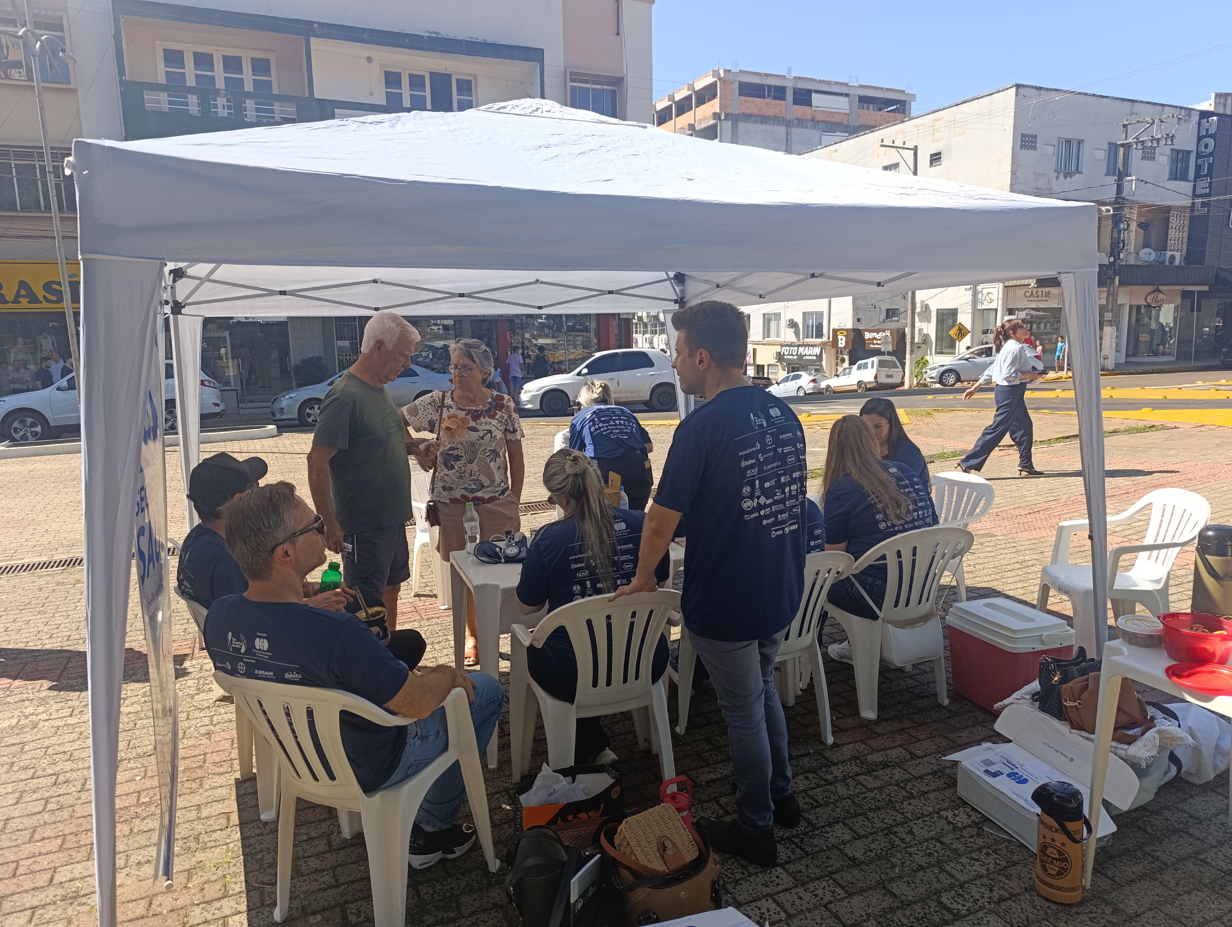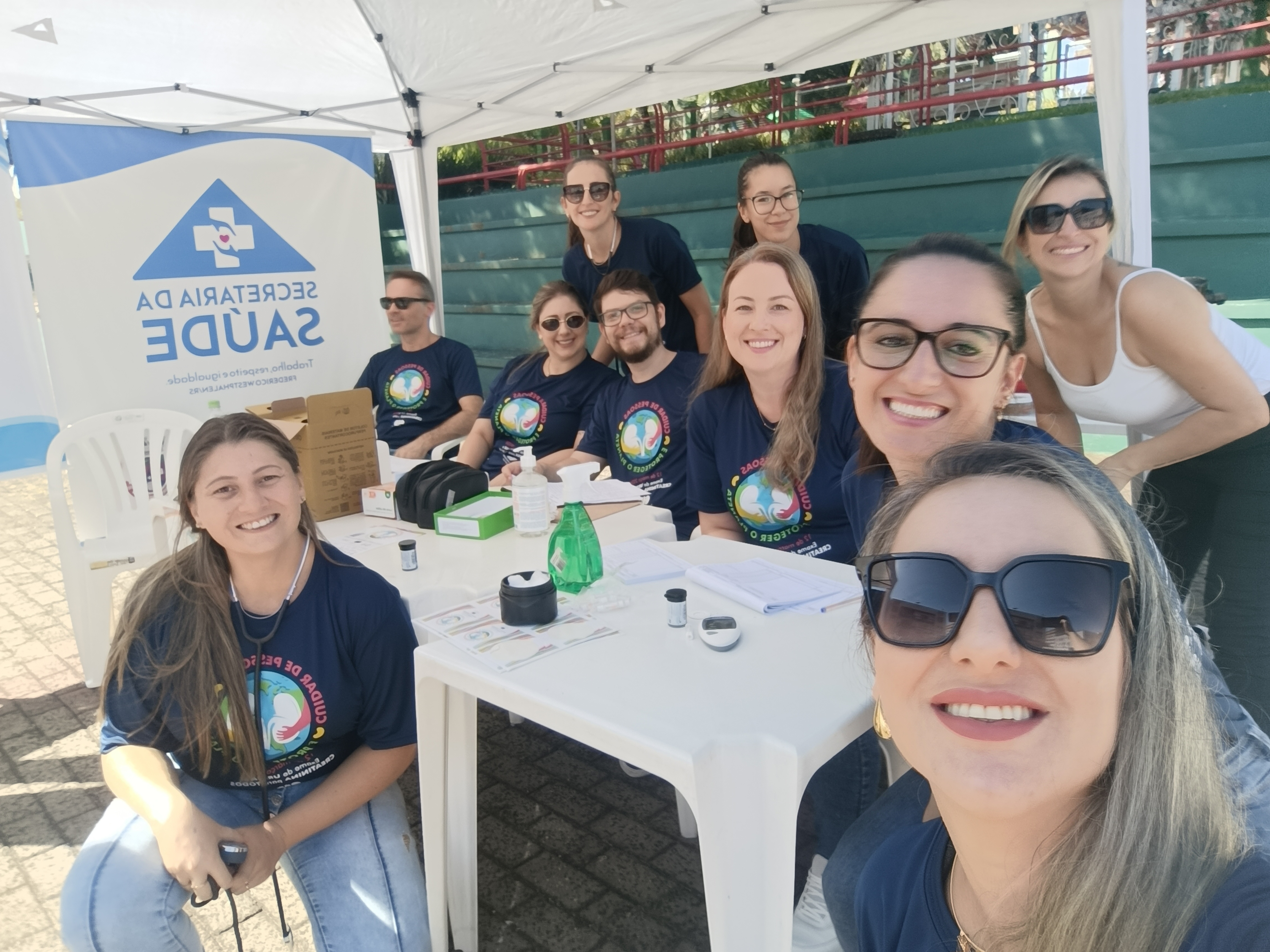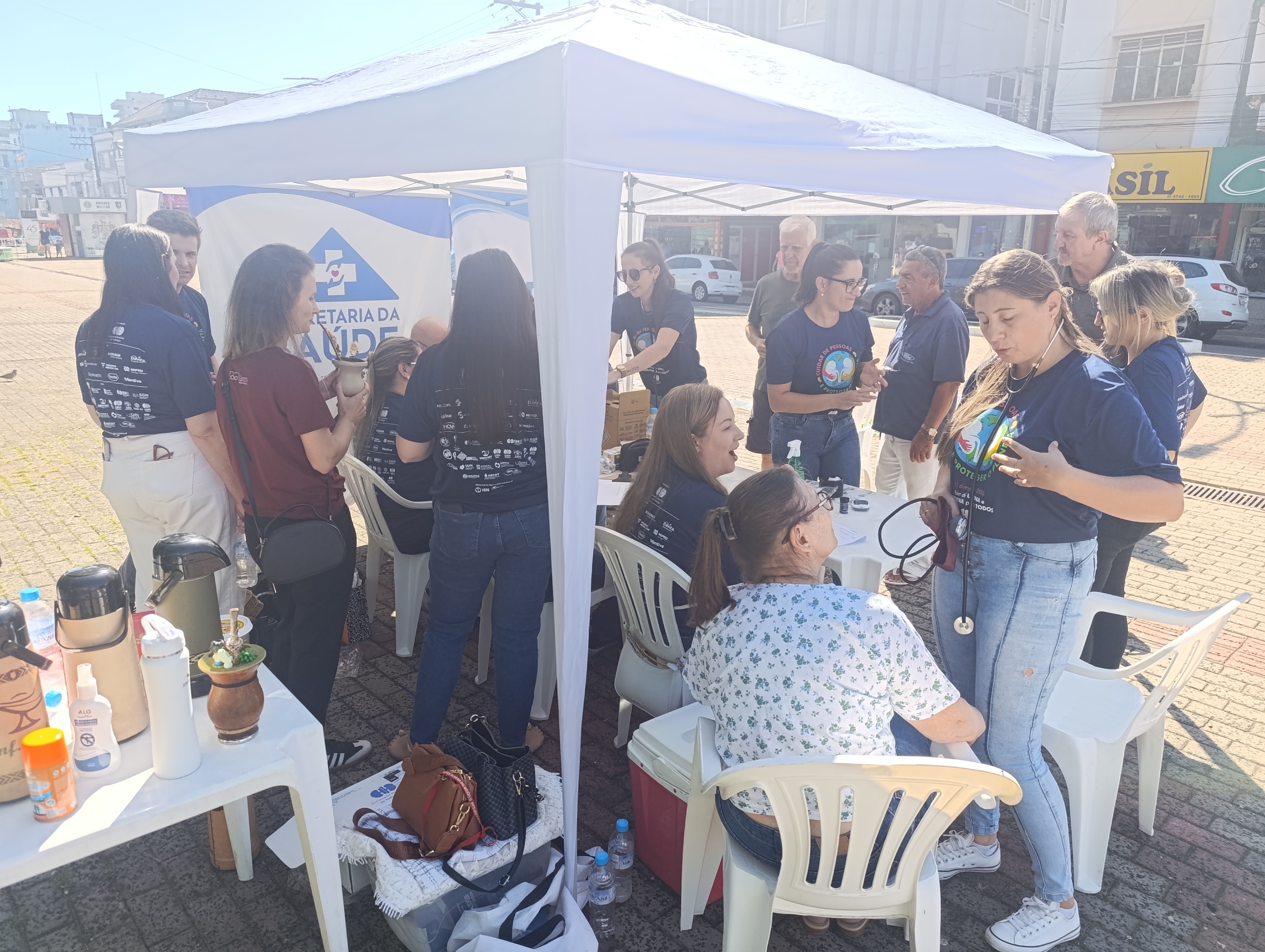 Campanha na praça municipal com verificação PA e Glicemia e entrega de exames laboratoriais.
