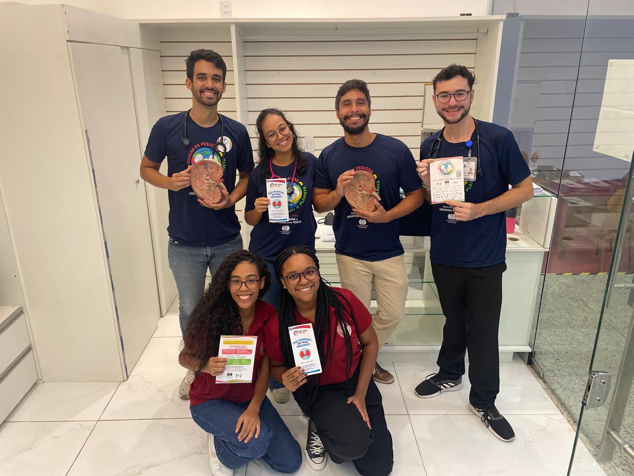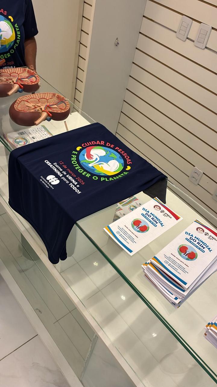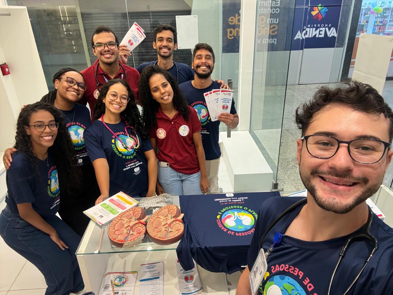 O evento ocorreu no Shopping Avenida, em Feira de Santana–BA no dia 20/03/2026. A ação contou com a triagem de risco para doença renal por meio do questionário Screening for Occult Renal Disease, além da distribuição dos materiais da SBN, dos folders confeccionados pelos discentes e de orientações voltadas para a educação em saúde.