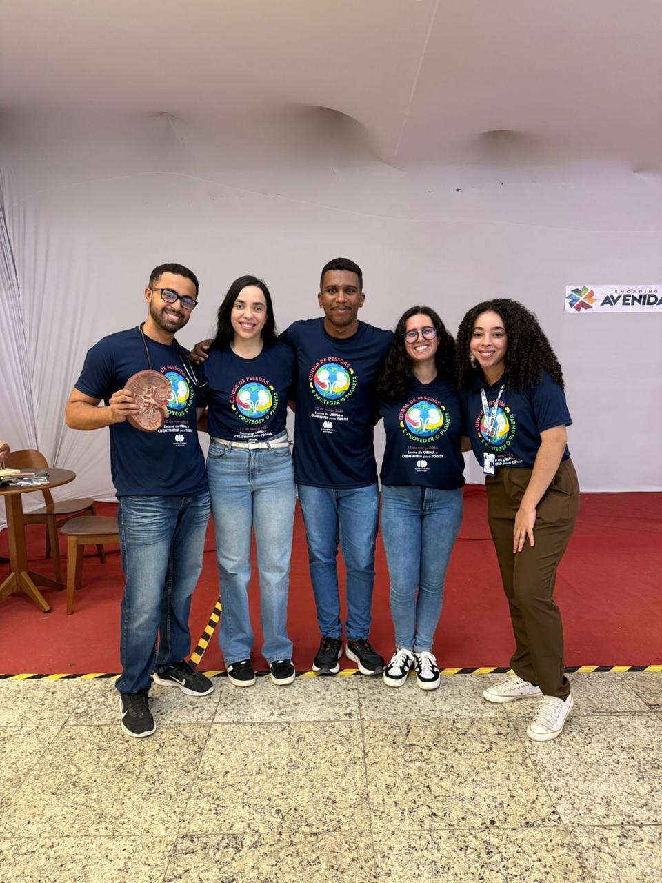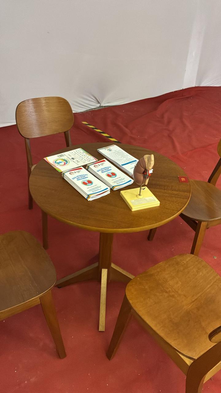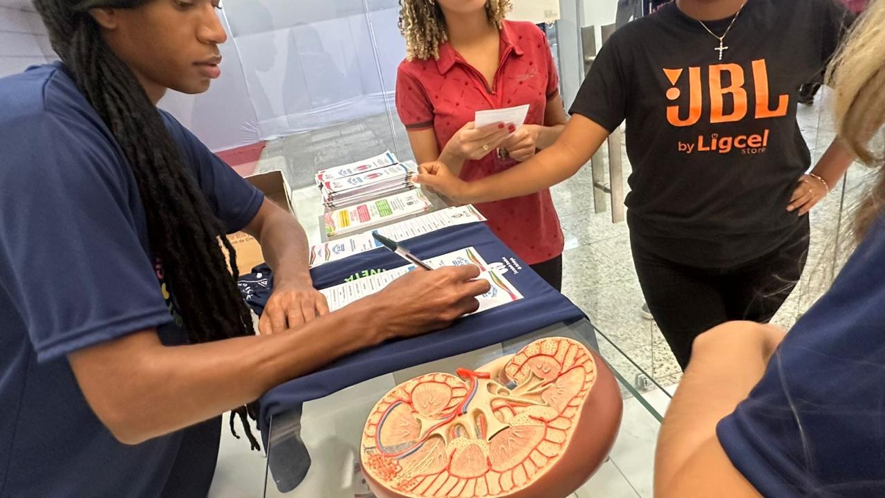 O evento ocorreu no Shopping Avenida, em Feira de Santana–BA no dia 20/03/2026. A ação contou com a triagem de risco para doença renal por meio do questionário Screening for Occult Renal Disease, além da distribuição dos materiais da SBN, dos folders confeccionados pelos discentes e de orientações voltadas para a educação em saúde.