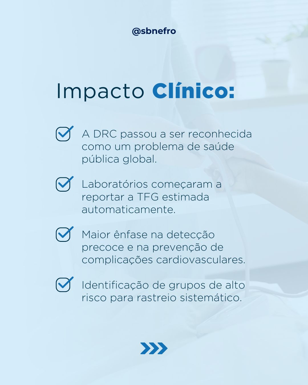 Ao estabelecer uma linguagem comum e um sistema de estadiamento, esse avanço permitiu diagnósticos mais precoces, melhor comunicação entre profissionais e maior atenção à DRC como um problema de saúde pública.