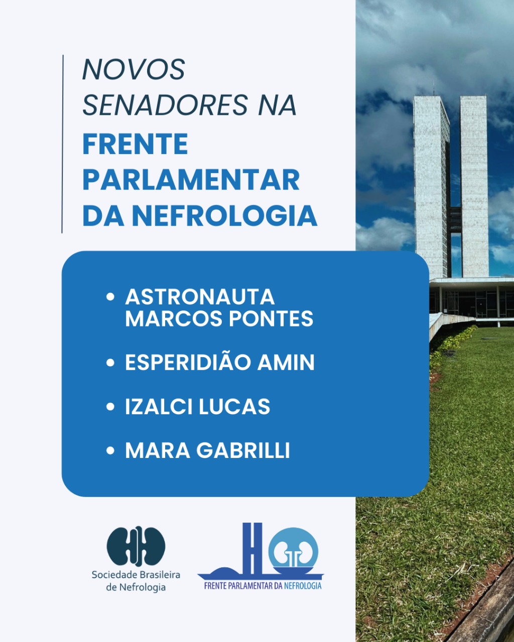 A Sociedade Brasileira de Nefrologia tem a satisfação de anunciar a adesão de novos senadores à Frente Parlamentar Mista da Nefrologia: