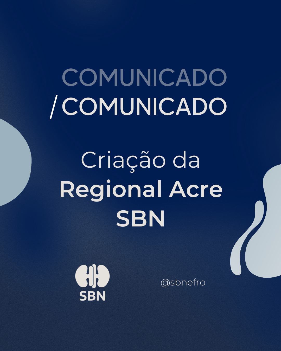 Anunciamos a criação da Sociedade Brasileira de Nefrologia Regional Acre – o que amplia a representatividade da nefrologia na Região Norte e o cuidado com a saúde renal da população acreana.