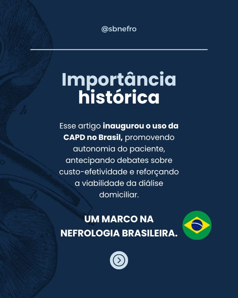 Você sabia que o primeiro relato brasileiro sobre Diálise Peritoneal Ambulatorial Contínua (CAPD) foi publicado em 1982, no Brazilian Journal of Nephrology?