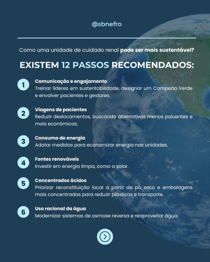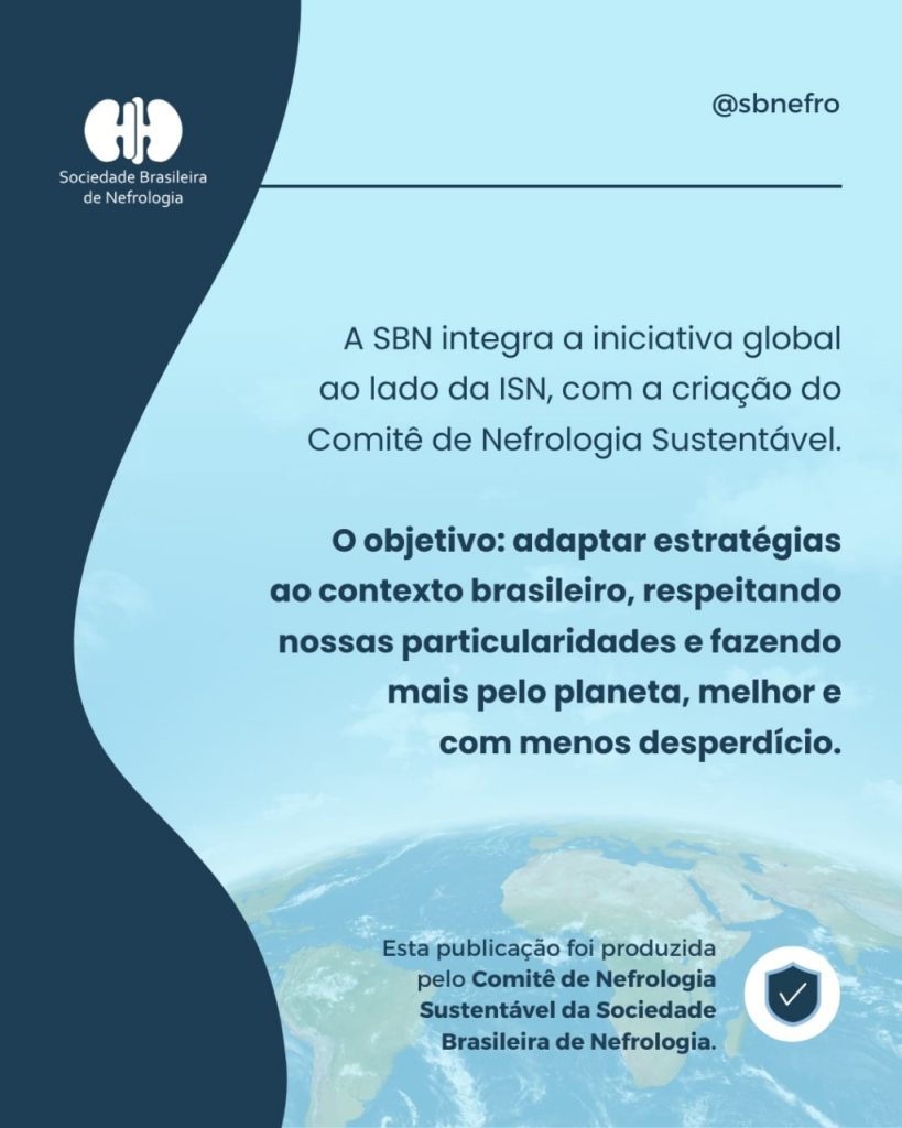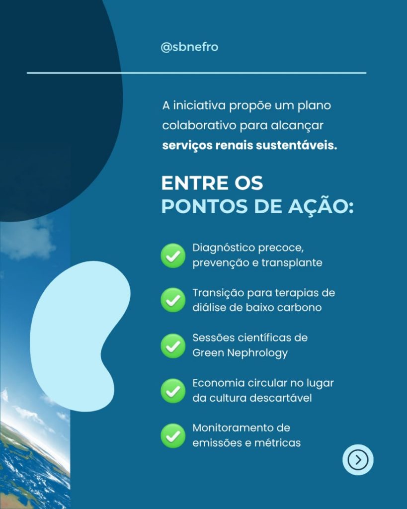 Green-K em ação! Cuidar da saúde renal também é cuidar do planeta. A iniciativa global propõe práticas sustentáveis para os serviços de nefrologia, como reduzir o consumo de água e energia, adotar energia renovável, diminuir descartáveis e investir em prevenção.