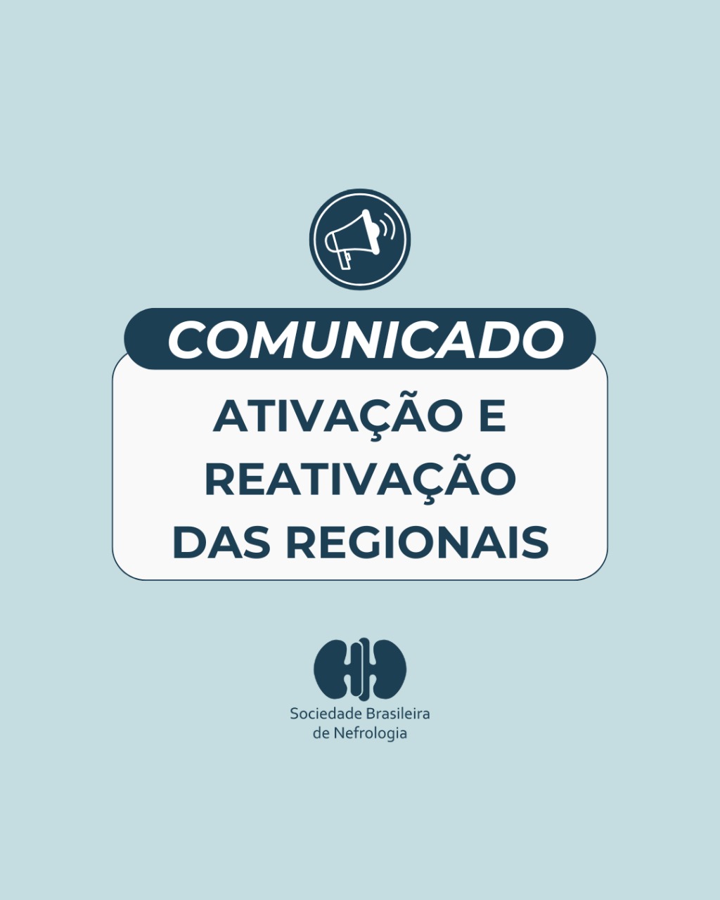 A Sociedade Brasileira de Nefrologia (SBN) informa aos seus associados que o processo de ativação e reativação de suas Regionais segue em curso no biênio 2025-2026, contemplando as Regionais Acre, Amazonas, Roraima e Sergipe.