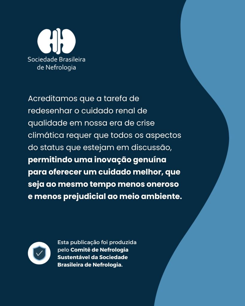 Você sabia? Um único tratamento de hemodiálise emite tanto carbono quanto um carro percorrendo 100 km. Isso mostra a urgência de buscarmos soluções mais sustentáveis.