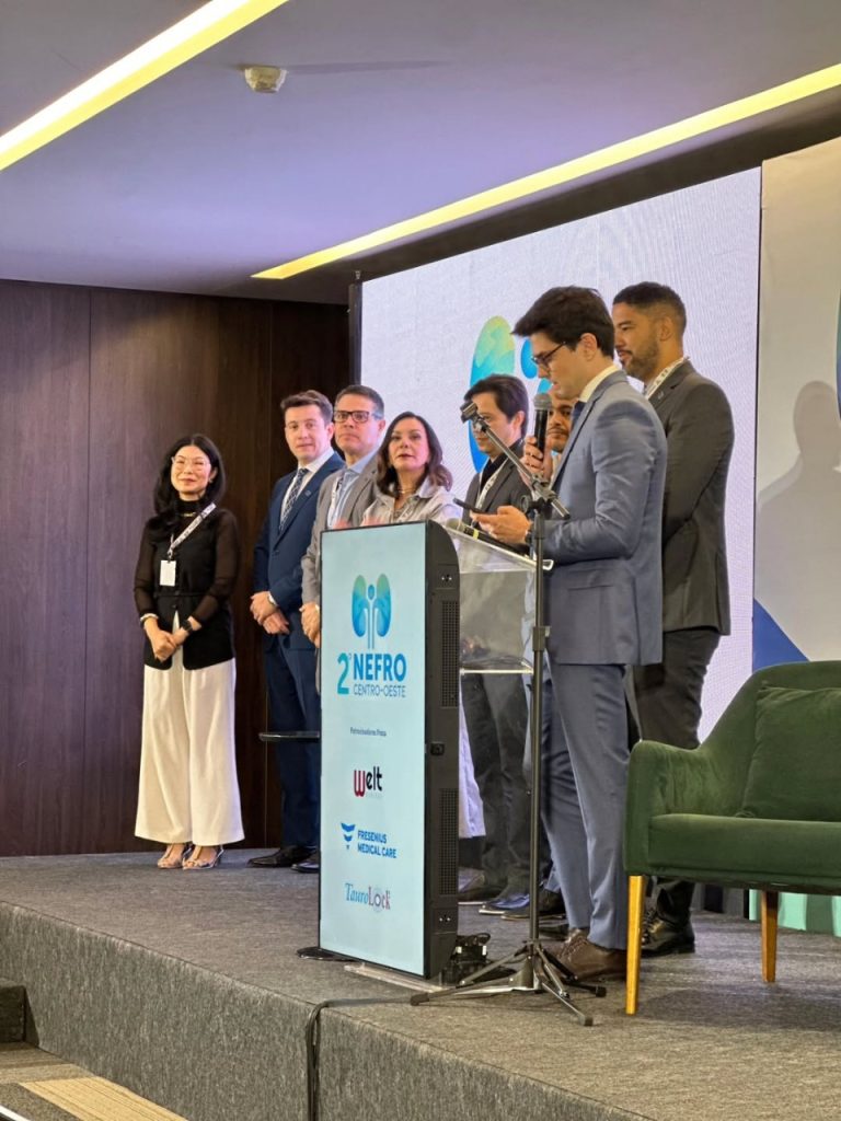 A Sociedade Brasileira de Nefrologia (SBN) participou da abertura do 2º Congresso Centro-Oeste de Nefrologia, realizada na manhã da sexta-feira, 28 de novembro de 2025, em Goiânia. O presidente da SBN, José Andrade Moura Neto, participou da solenidade de abertura ao lado do presidente do congresso e vice-presidente Centro-Oeste da SBN, Ciro Bruno Costa, bem como dos presidentes das Regionais MT, Luiz Gonzaga, e DF, Luiz Roberto Ulisses.