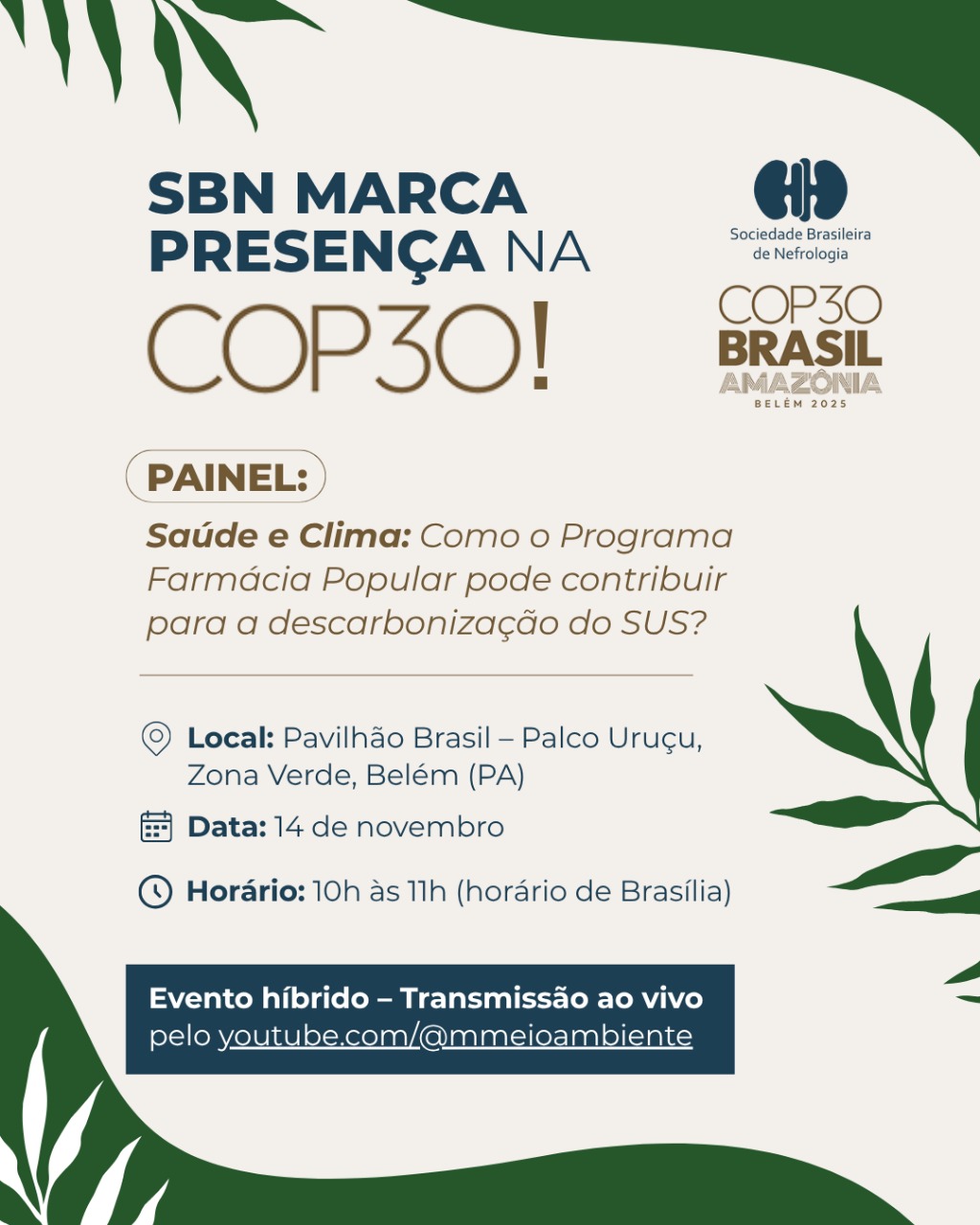 O presidente da Sociedade Brasileira de Nefrologia, José Moura-Neto, participa do painel “Saúde e Clima: Como o Programa Farmácia Popular pode contribuir para a descarbonização do SUS?”, durante a Conferência das Nações Unidas sobre Mudanças Climáticas (COP30).