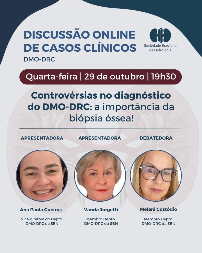 Quarta-feira (29.10), às 19h30, a Sociedade Brasileira de Nefrologia promoveu mais uma discussão online de Casos Clínicos do Departamento de DMO-DRC da SBN.