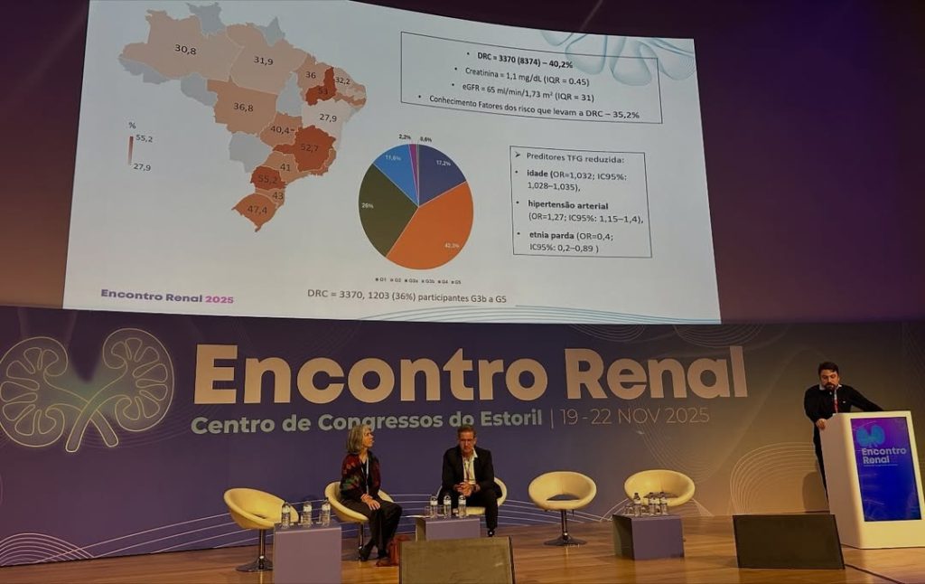 Na sexta-feira (22/11), o presidente da SBN, José Moura Neto, apresentou resultados preliminares do Projeto Epi-DRC Brasil – iniciativa realizada em 40 cidades em 20 estados brasileiros, que identificou 3.370 pessoas com alteração da creatinina em teste rápido (point-of-care). O Epi DRC Brasil foi conduzido pela SBN e suas Regionais durante a campanha do Dia Mundial do Rim 2025.