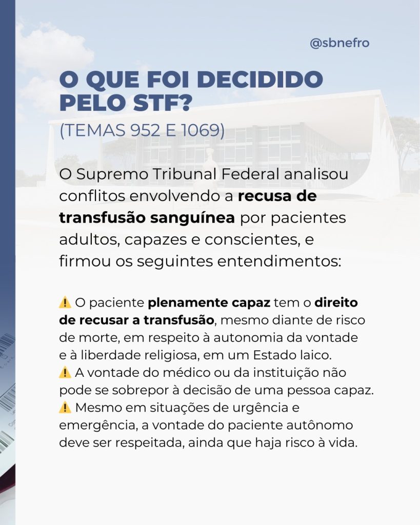 Nos Temas 952 e 1069, o Supremo reafirmou a autonomia do paciente adulto e capaz, estabelecendo parâmetros para a conduta médica, o papel das instituições de saúde e os limites da intervenção em situações de urgência.