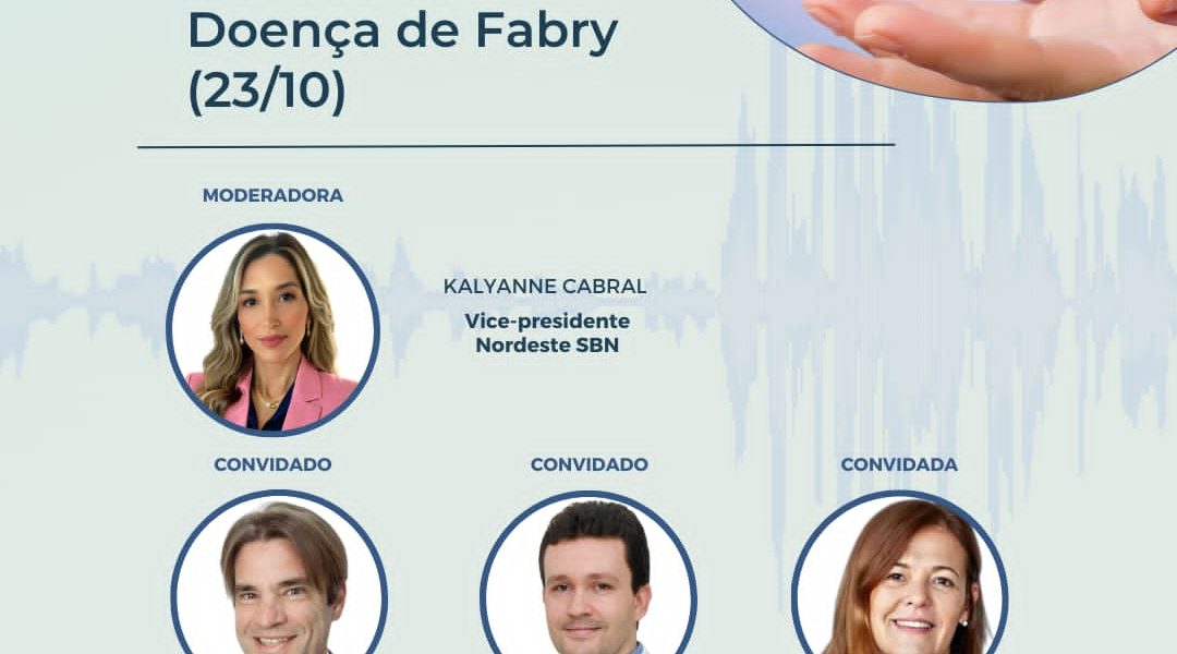 Novo podcast no ar! ‘Diagnóstico Precoce da Doença de Fabry’. Foram convidados para este episódio: Kalyanne Cabral, Vice-presidente Nordeste, Gustavo Modelli, Membro do Departamento de Transplante, Cassiano Augusto, Vice-coordenador do COMDORA e Maria Helena Vaisbich, Coordenadora do COMDORA. 🔊 Para ouvir o episódio, acesse o canal da SBN no Spotify ou Apple Podcast, ou copie e cole o link abaixo