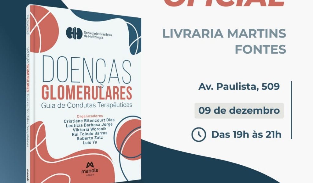 Lançamento oficial! A Sociedade Brasileira de Nefrologia convida para o lançamento do livro “Doenças Glomerulares: Guia de Condutas Terapêuticas” – uma obra essencial para a prática clínica em nefrologia. 🗓 09 de dezembro (terça-feira) 📍 Livraria Martins Fontes – Av. Paulista, 509 🕖 Das 19h às 21h Uma publicação da SBN, em parceria com a Editora Manole, reunindo grandes nomes