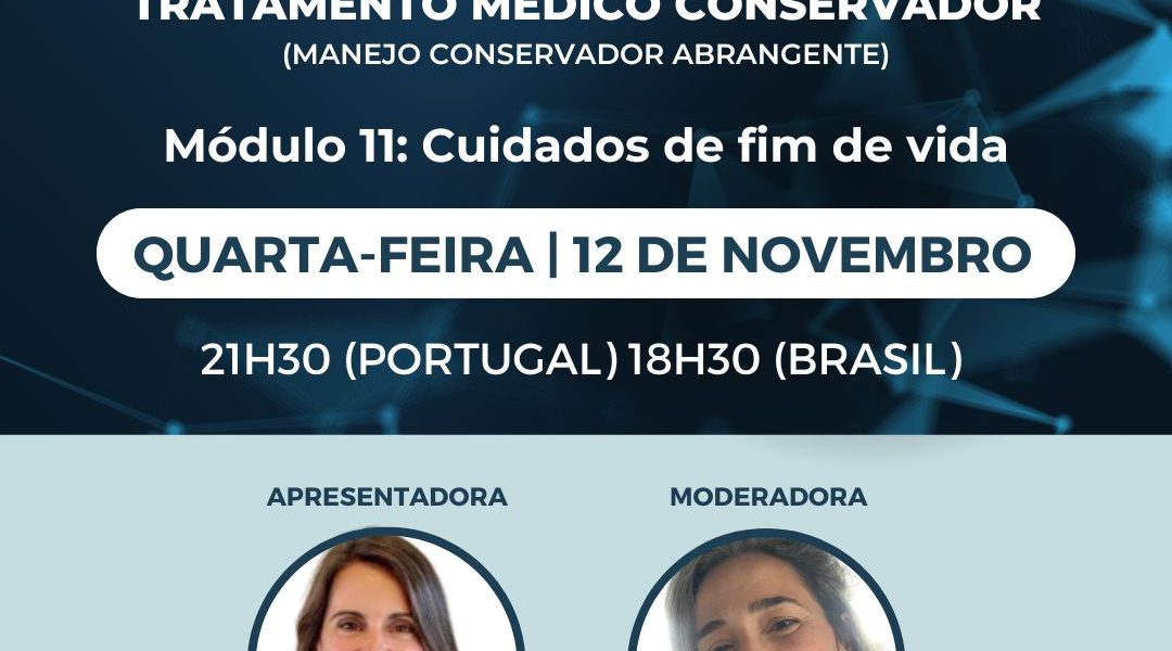 Na quarta-feira, 12/11, às 18h30 (horário de Brasília), a Sociedade Brasileira de Nefrologia realizará mais um webinar em parceria com a Sociedade Portuguesa de Nefrologia. O tema do Módulo 11 será: “Cuidados de fim de vida.” ▶ Os associados receberão o link via e-mail. Programe-se!